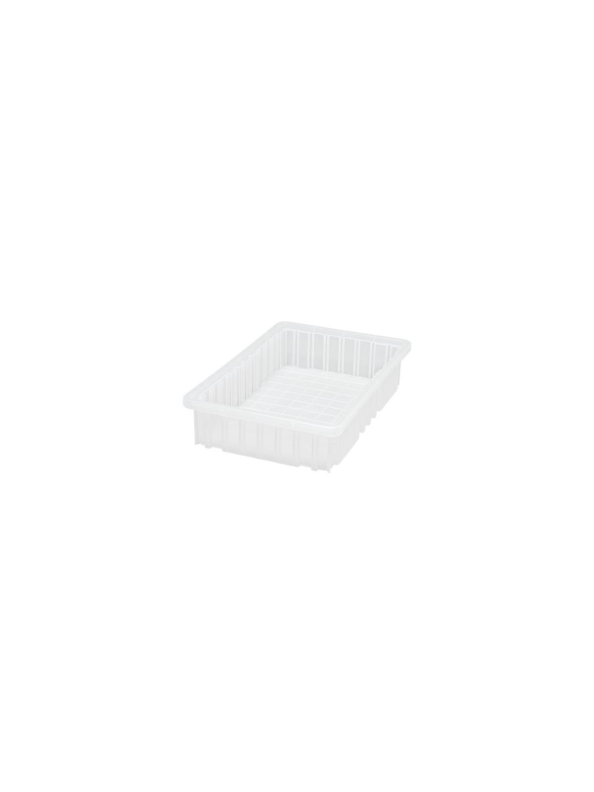 Can be used in industrial, commercial, electronic and health care industries for storage, assembly, fabrication and distribution applications. Compatible with most racks, shelving and automated, material handling equipment. Stacking rims and multi-ribbed external sides provide high impact strength. Large, smooth surface area on all four sides for content identification. Molded-in stacking ridge assures containers will stack securely with or without covers (covers sold separately). Available in Blue, Red, Gray or Clear. FOB Shipping Point.