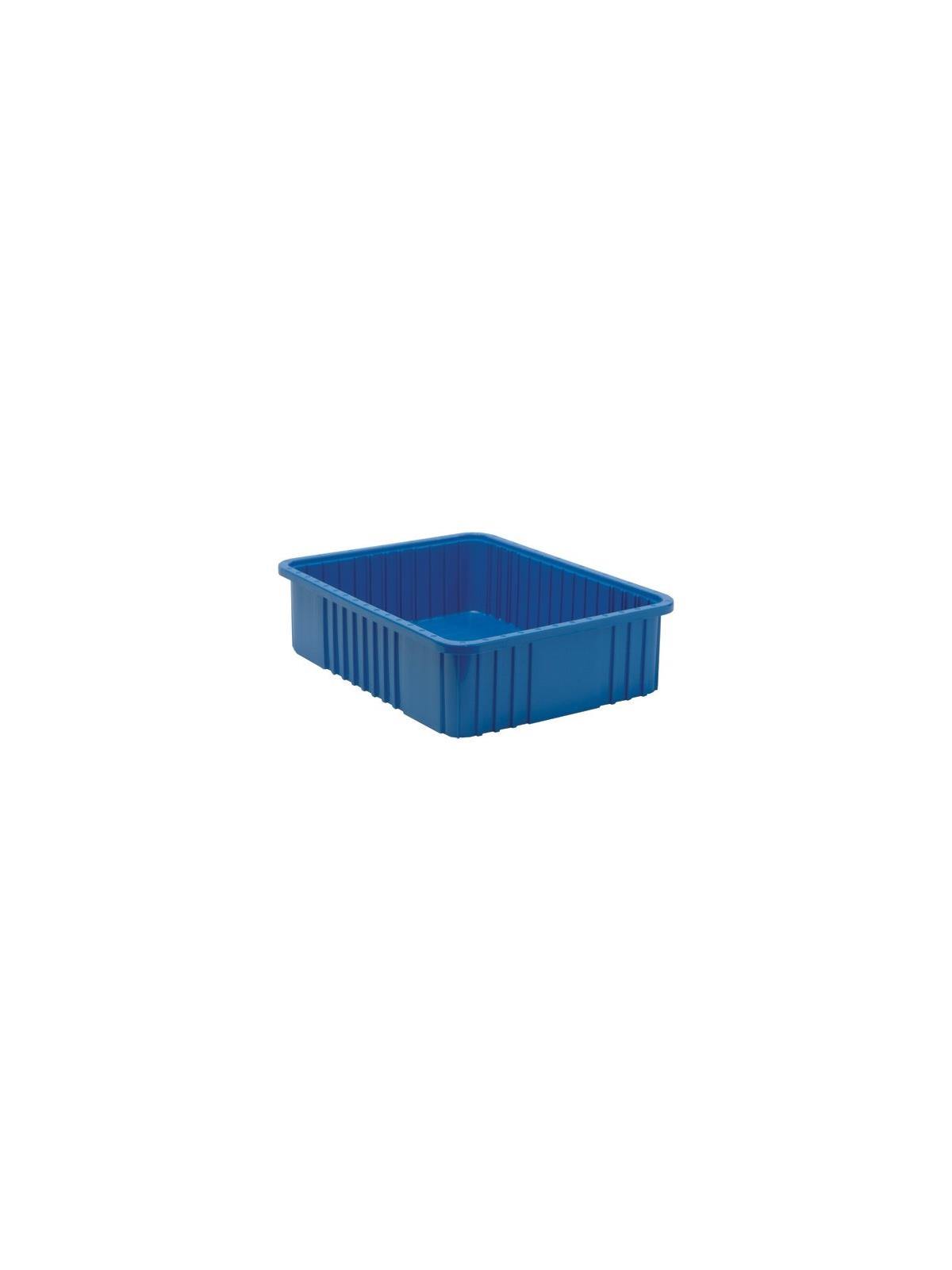 Can be used in industrial, commercial, electronic and health care industries for storage, assembly, fabrication and distribution applications. Compatible with most racks, shelving and automated, material handling equipment. Stacking rims and multi-ribbed external sides provide high impact strength. Large, smooth surface area on all four sides for content identification. Molded-in stacking ridge assures containers will stack securely with or without covers (covers sold separately). Available in Blue, Red, Gray or Clear. FOB Shipping Point.