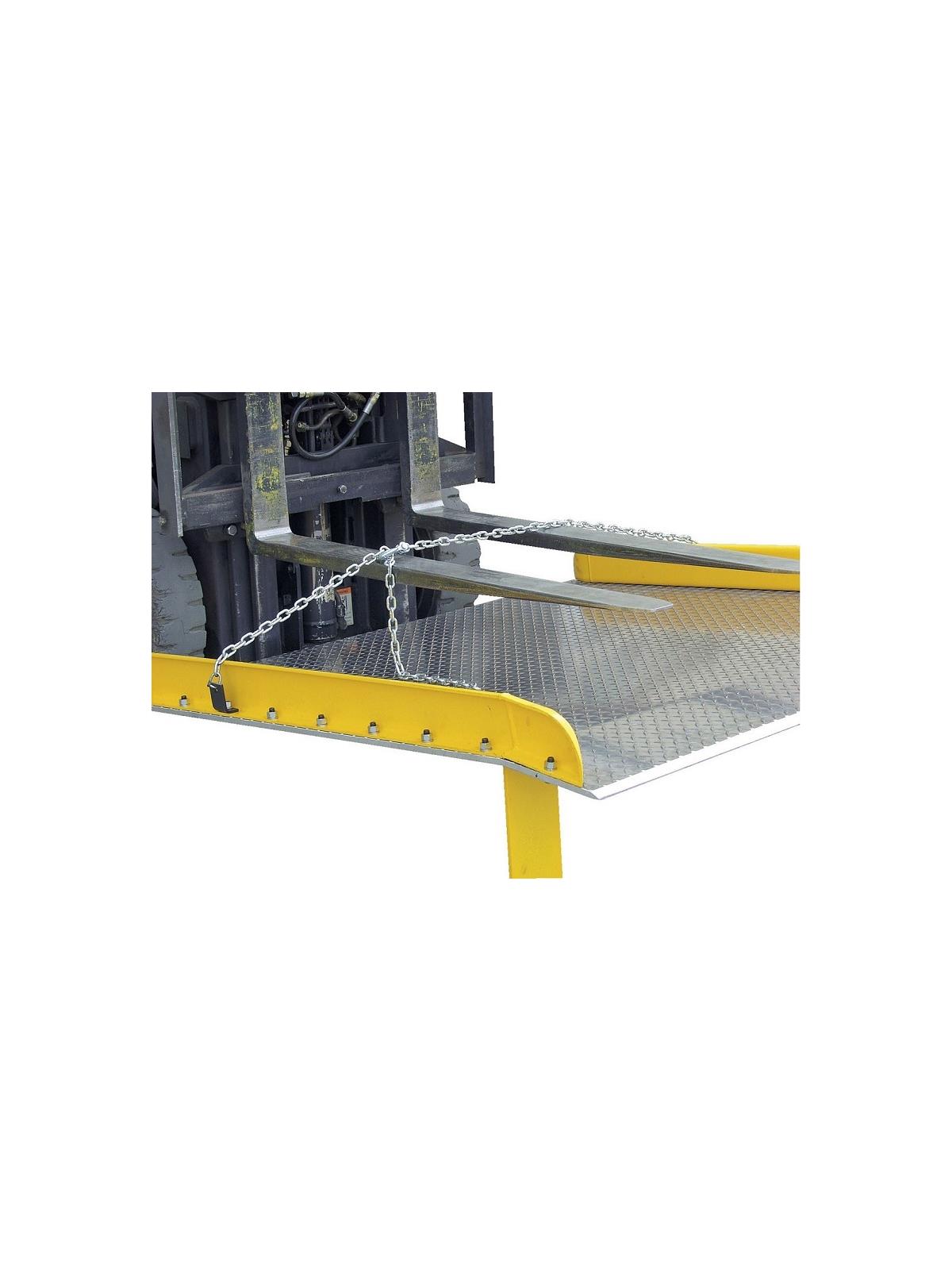 Now, boards can be quickly and easily moved with your forklift. Heavy duty chains lock onto board curbs with rugged steel hooks and locked by a screw and knob type locking pad. Removes in seconds.
