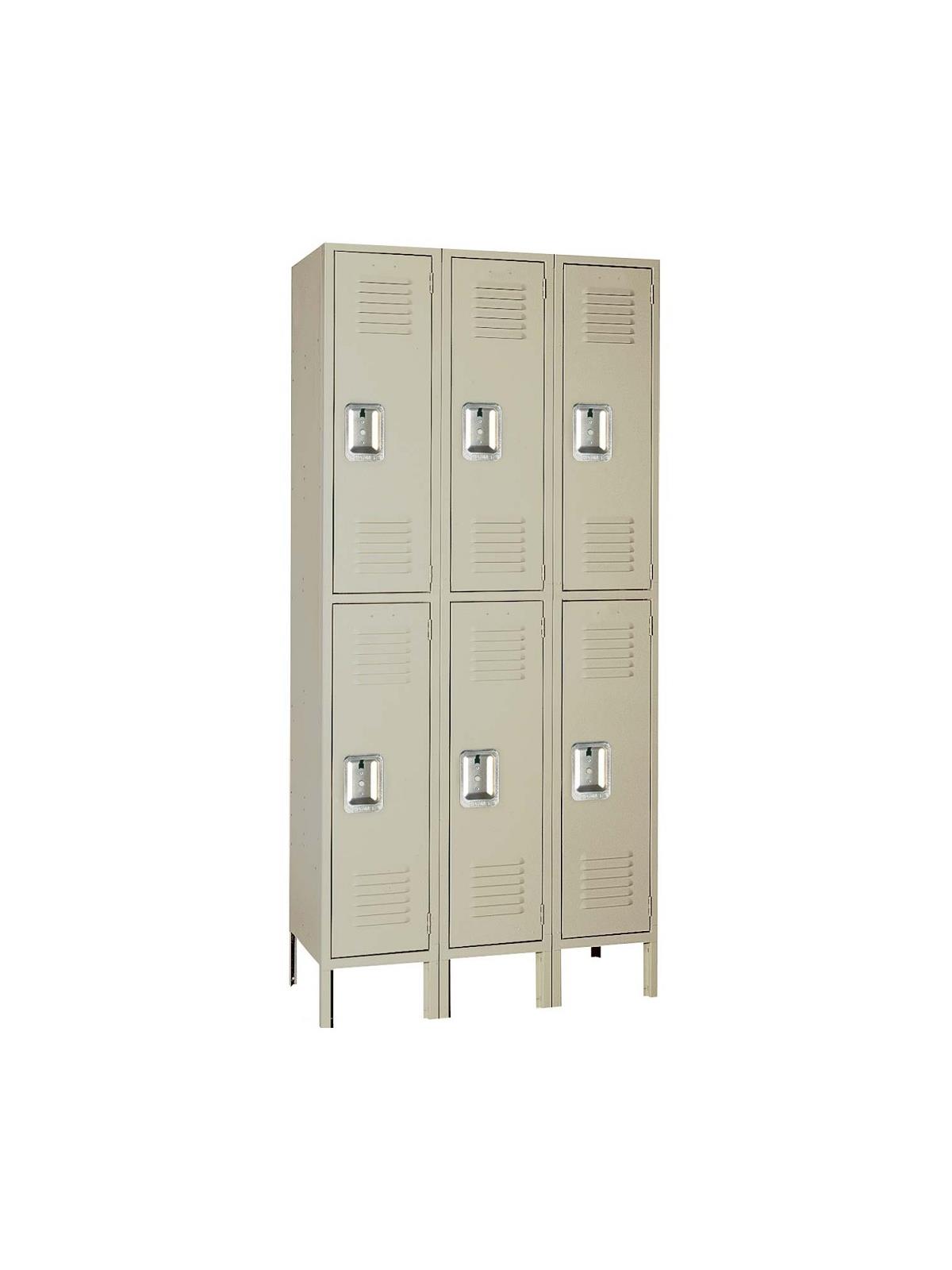Double Tier Lockers - Features steel recessed handle and hooks for hanging clothing and other items.