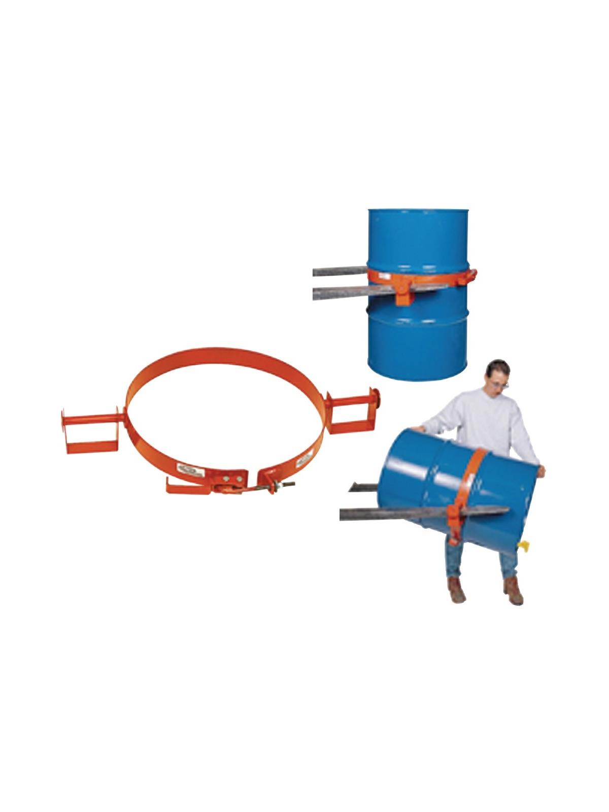 Designed for safety, this drum caddy easily transports drums with your forklift. Steel band slips over drum and is fastened with a specially designed over center latch. Unique 5 x 3" pivoting fork stirrups will allow drums to tilt for ease of dispensing. For use with steel drums only. FOB Shipping Point.