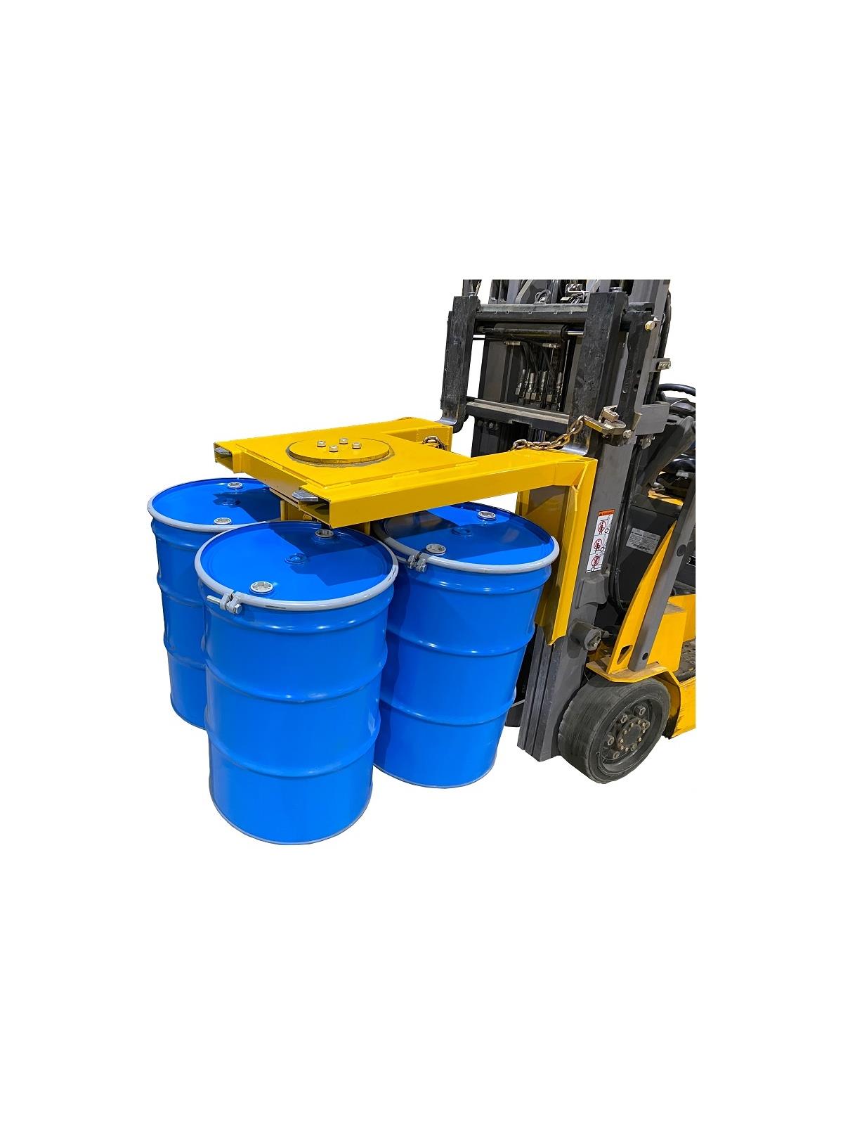 Easy Lift Equipment's Eagle-Grip® HEL4F Heavy-Duty Clamping Mechanism is designed for high-volume drum handling. The HEL4F is all-mechanical and capable of handling one to four fully loaded drums at a time without the need for hydraulic or electrical connections to the lift truck. It's the ideal attachment for loading or unloading trailers, oversea shipping containers or for palletizing drums from filling lines. The HEL4F consists of a floating head with a centering guide which helps properly position the clamping mechanism into place, while lowering the attachment between up to 4 drums. FOB Shipping Point.
