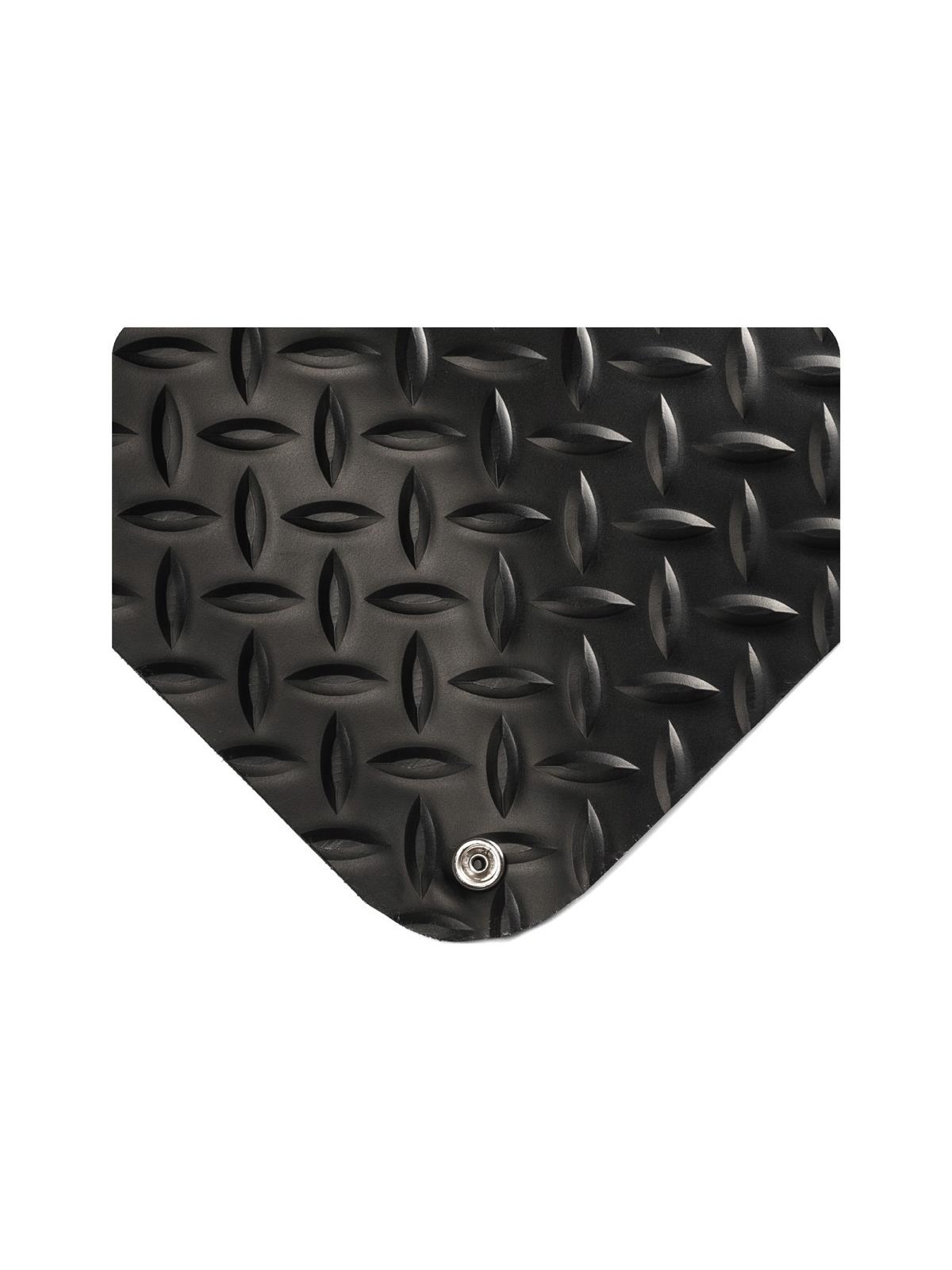Mat protects sensitive electronic equipment while dramatically reducing worker’s standing fatigue. No. 1 seller for static-control applications, it features our durable, top-of-the-line Nitricell sponge, providing the best long-term value for ESD applications. Available in Smooth or Diamond-Plate surfaces. Mat must be grounded with a ground cord; workers must wear heel grounder or conductive shoes. Black in color. FOB Shipping Point.