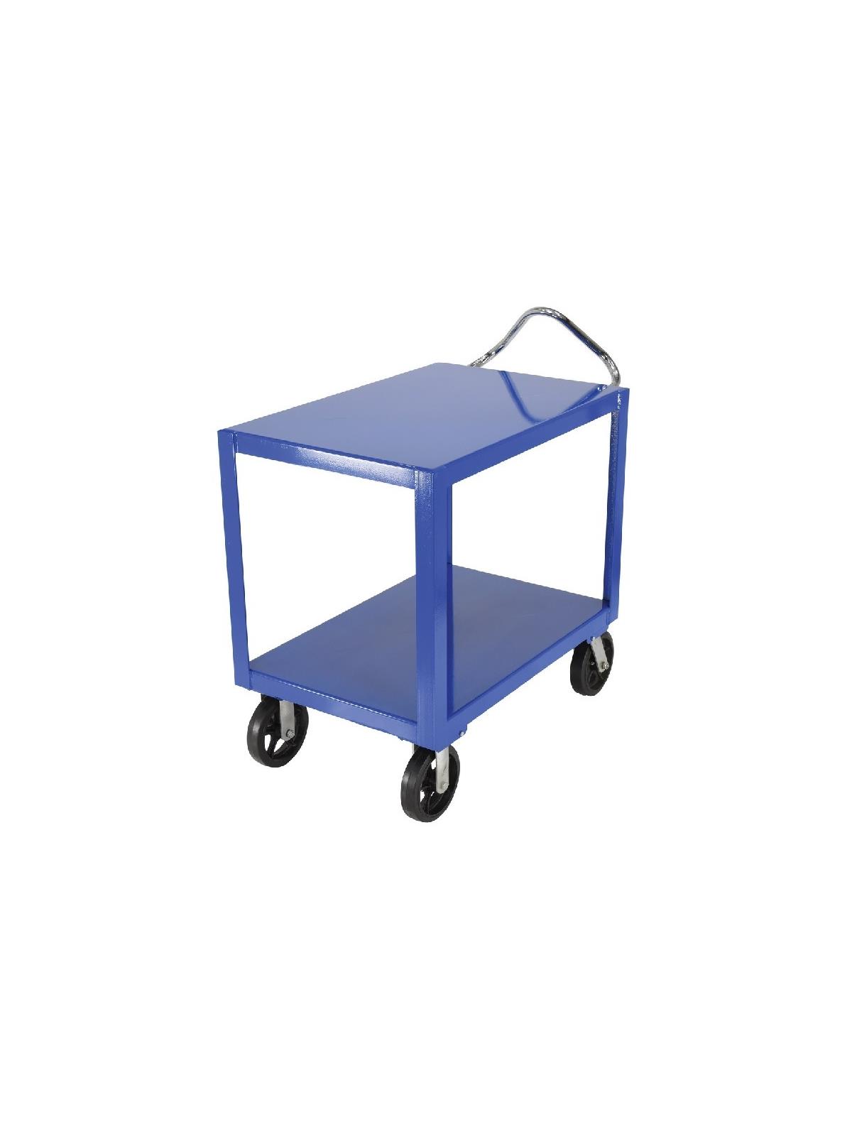 Constructed of heavy-duty steel to handle uniform loads up to 4,000 pounds. The patented ergonomic handle decreases fatigue by allowing the operator to easily maneuver the cart. Handle can be inverted for individual height comfort. Rolls on 8" x 2" casters, two (2) rigid and two (2) swivel with roller bearings. Many caster styles to choose from. Additional sizes available.  FOB Shipping Point.