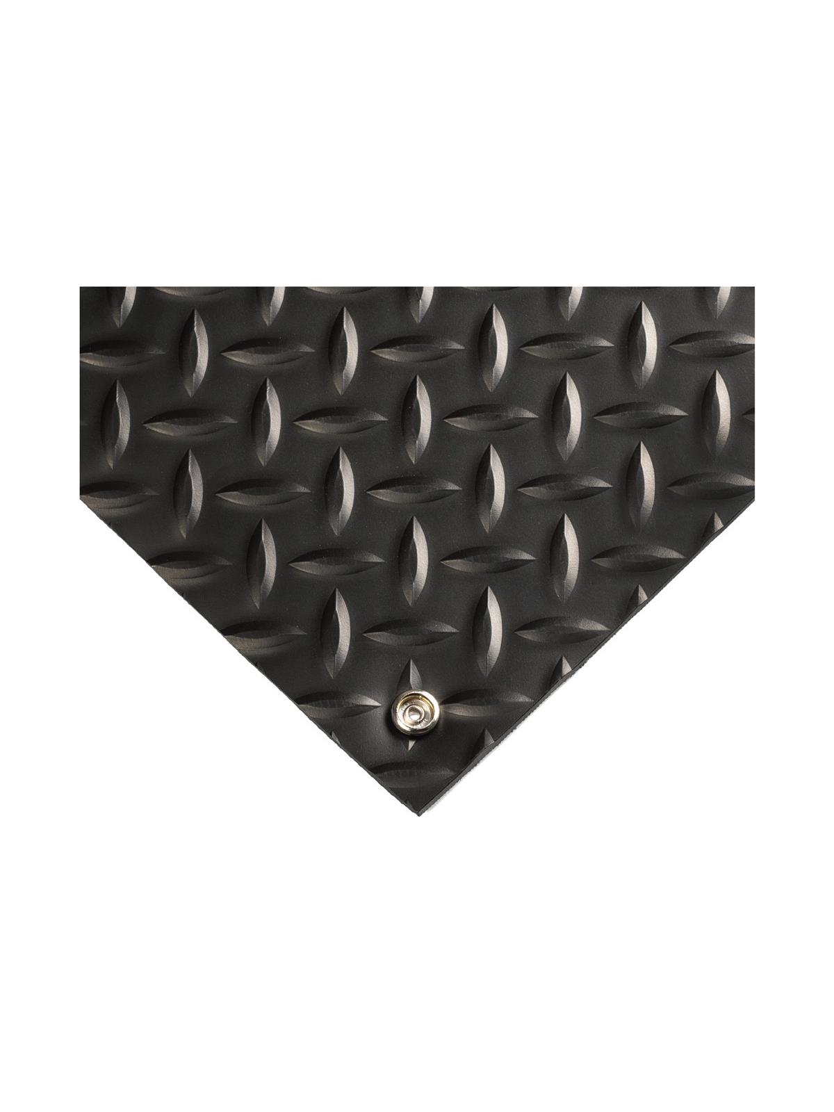 Use this Electrically Conductive Runner to prevent static and protect sensitive electronic equipment. Can be rolled out for long aisles or cut to size for specific workstations. A grounding snap is included on each mat for optimum mat performance. Available in Smooth or Diamond-Plate surfaces. Mat must be grounded with a ground cord; workers must wear heel grounder or conductive shoes. Black in color. FOB Shipping Point.
