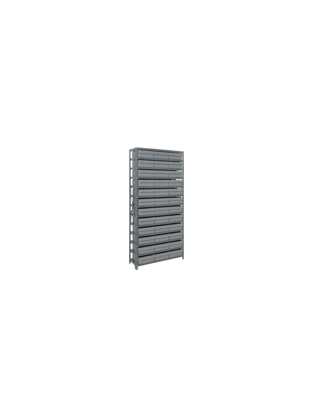 Heavy Duty Steel Shelving Units - Save time locating parts using our tough Euro Drawers with our sturdy open or closed steel shelving. 36" wide x 75" or 39" high units offer heavy-duty, high grade shelving with a 400 lb. capacity per shelf. Closed shelving provides a dust free environment for stored parts. Shelving is Gray in color. Drawers are available in Blue, Yellow, Gray or Red. FOB Shipping Point.