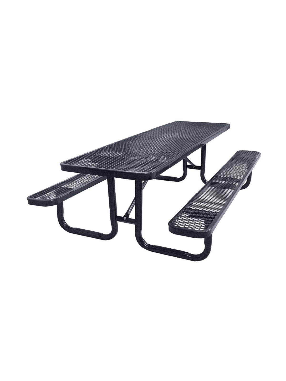 Our expanded metal picnic tables have weatherproof thermoplastic coating to provide years of attractive usage. Black powder coated galvanized steel 2-3/8" tubular legs. Available in sizes from 4' to 12' in length. ADA tables available in 8' size. Please specify color in comments when ordering. FOB Shipping Point.