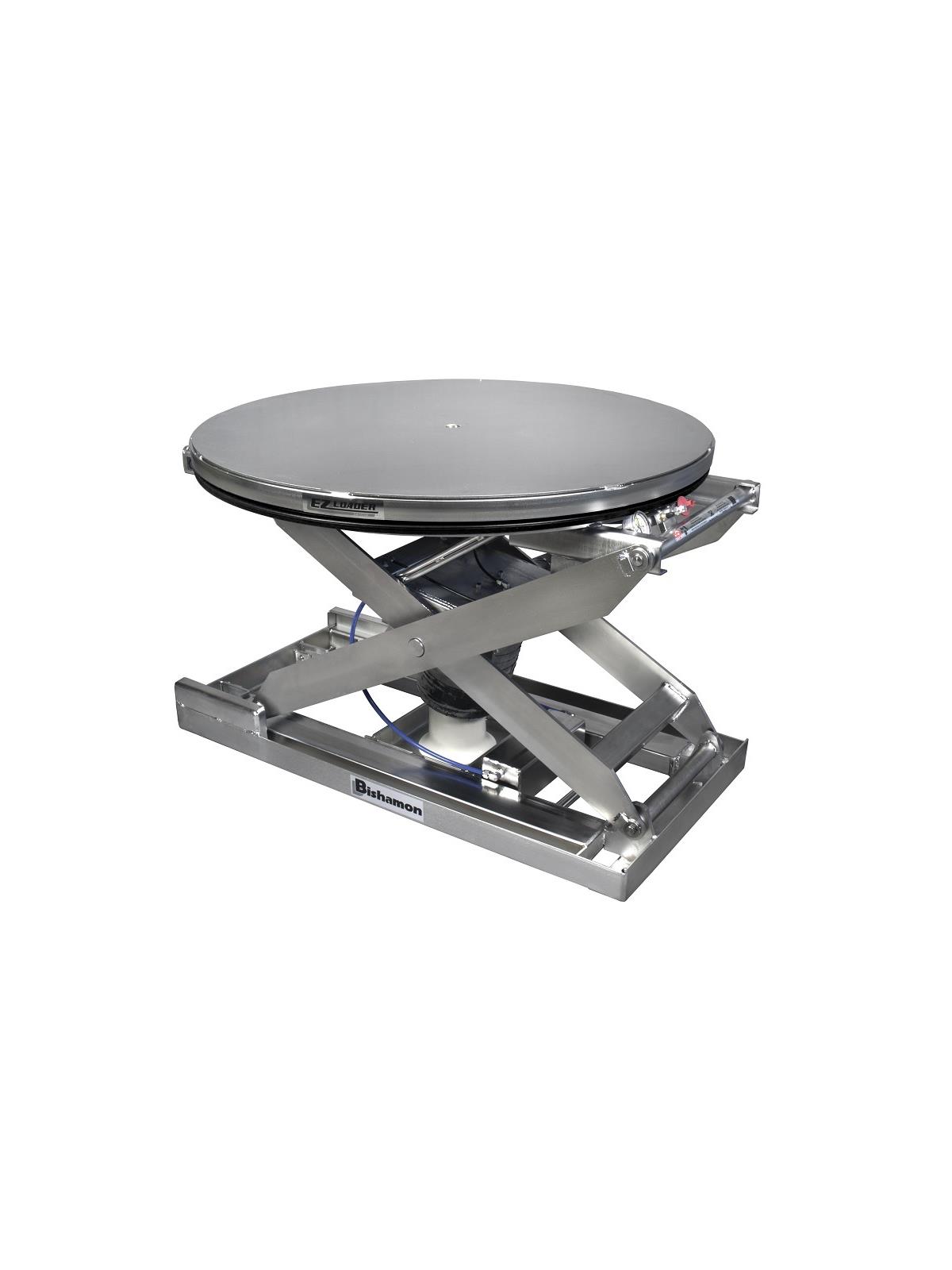 The Bishamon EZ Loader® is a state-of-the-art automatic pallet positioner designed to make loading and unloading faster, safer, and more efficient. Featuring lifting capacities up to 4000 lbs., an integral turntable top, entrapped rollers for stable operation, and hinged maintenance bars for added security, the EZ Loader® sets new standards in ergonomic design. Choose from five models and customize with optional accessories to meet specific needs and applications. Transportable with a forklift or an optional portability kit, the EZ Loader® arrives fully assembled and ready for use. FOB Shipping Point.