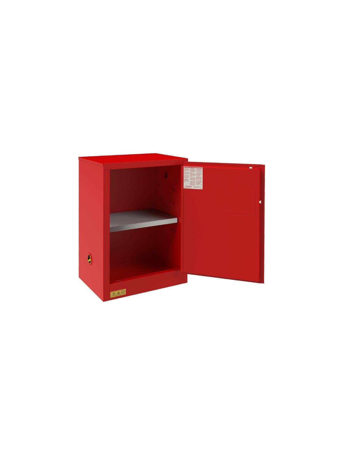 Flammable Storage Cabinets are required by OSHA and UFC in commercial and industrial facilities where flammable liquids are used and stored. Cabinets feature recessed lockable paddle latch and 3 point locking systems which greatly improves security. Bunged air vents on each side of the cabinet allows for greater ventilation. Constructed of all welded Heavy Duty Steel.