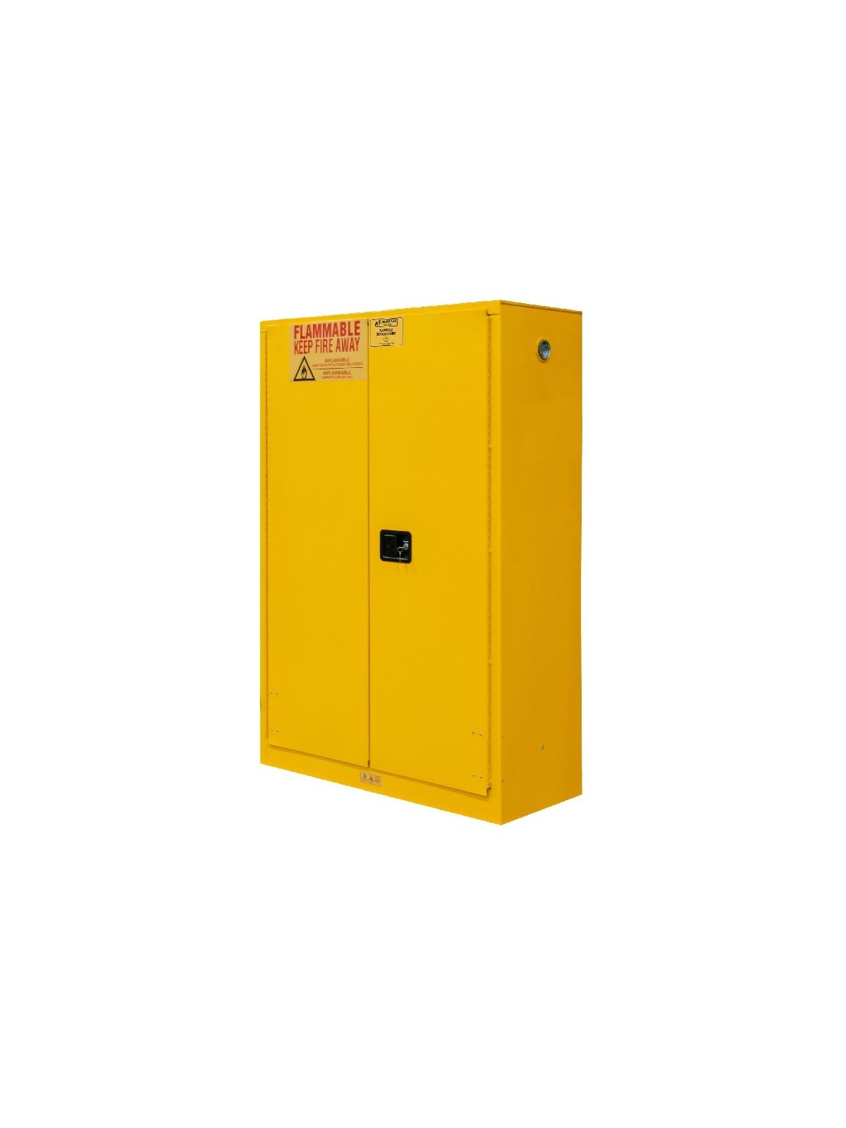 Flammable Storage Cabinets are required by OSHA and UFC in commercial and industrial facilities where flammable liquids are used and stored. Cabinets feature recessed lockable paddle latch and 3 point locking systems which greatly improves security. Bunged air vents on each side of the cabinet allows for greater ventilation. Constructed of all welded Heavy Duty Steel.