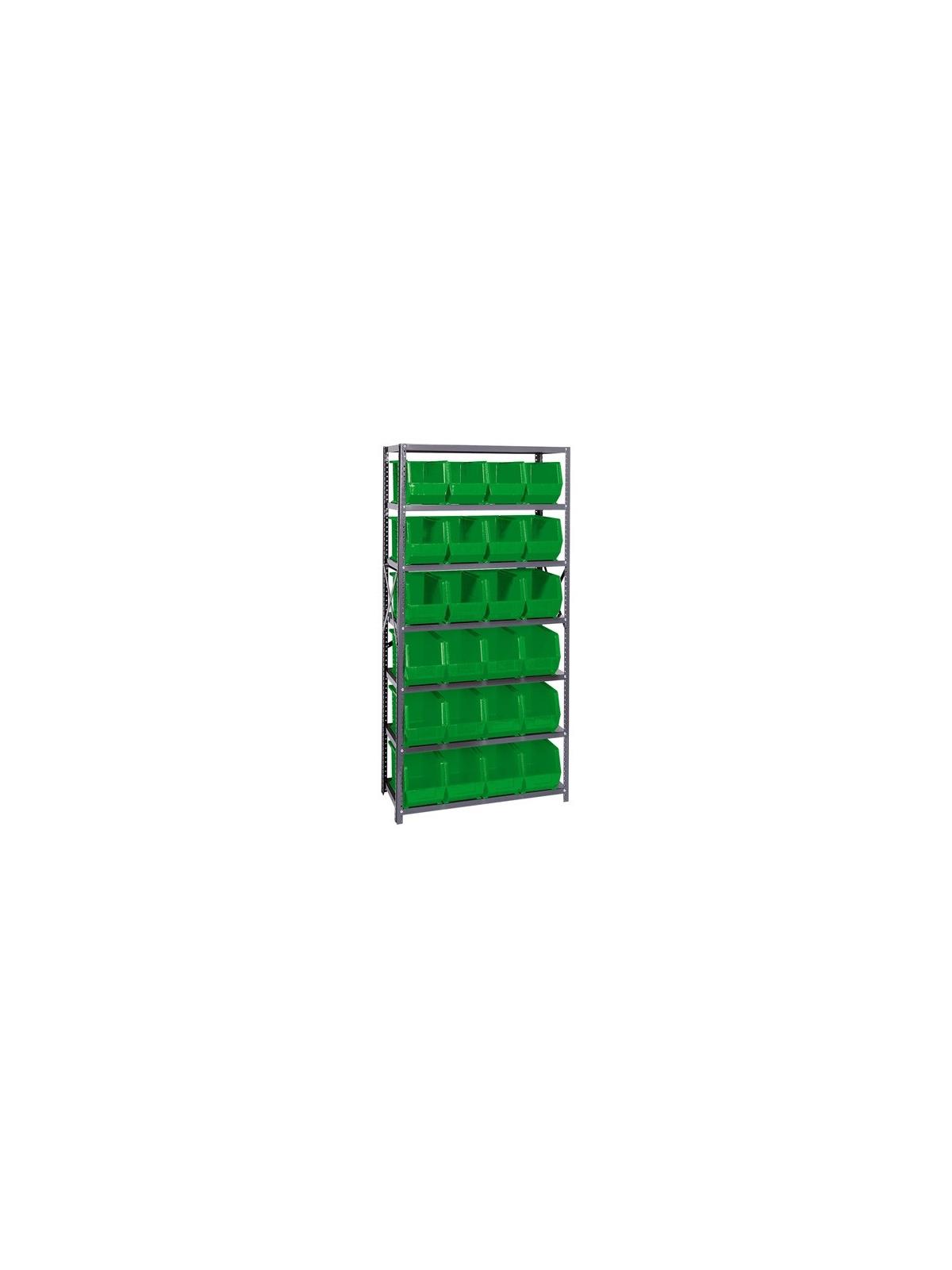 Sold complete with shelving and bins. 350 lb. capacity per shelf. Bins available in Yellow, Blue, Red, Green, Ivory and Black. FOB Shipping Point.