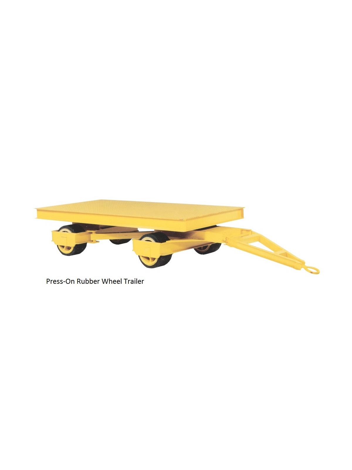 Features heavy channel frame construction. Diamond pattern floor plate deck. 4" I.D. ring grip tongue. Heavy-duty grease plate type fifth wheel with grease zerks. Timken Tapered wheel bearings with grease zerks. Trailers can be furnished with double end steer to be pulled from either end, or 4-wheel steer for tighter turns. Also available with manual hook or automatic couplers and rear hitches - contact us for details. FOB Shipping Point.