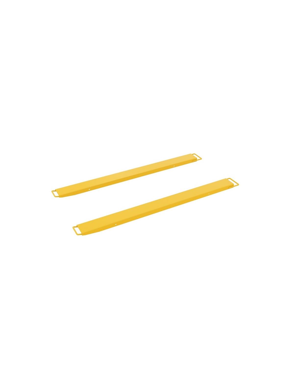 High Strength Fork Extensions are the perfect accessory for new or existing forks. The high strength material provides extra support needed to lift large heavy objects with a fork lift. A 3/16" thickness and included lifting handle for simple placement of the extension onto the lifting fork. These models are almost 40% lighter than standard fork extensions. 4,000 pound capacity is evenly distributed per pair. A powder coat finish is included to diminish scrapes and minimize abrasion during use. Baked-in powder coat finish for added toughness. FOB Shipping Point.