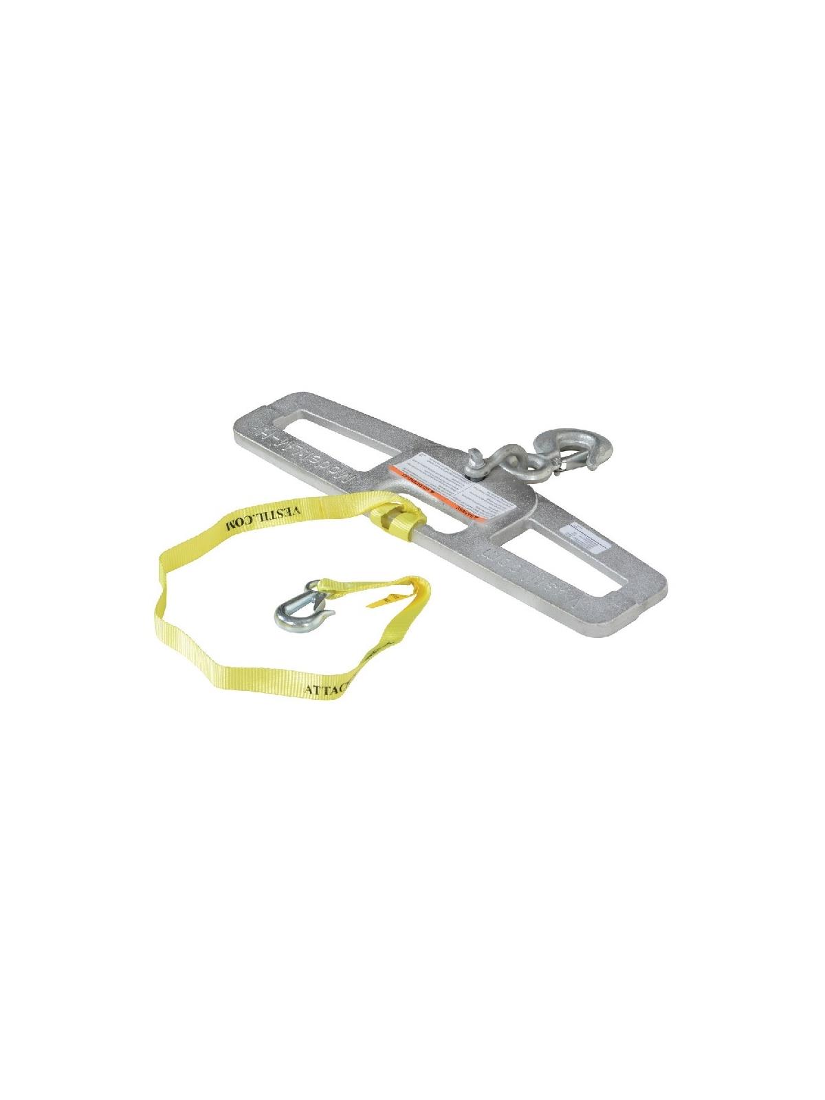 Hook Plates enable any fork truck to safely lift a load using chains, cables or slings. Features slanted fork openings measuring 6-1/2" wide by 1-3/4" high to prevent the hook plate from being used upside down. A hook with anchor shackle is included. FOB Shipping Point.