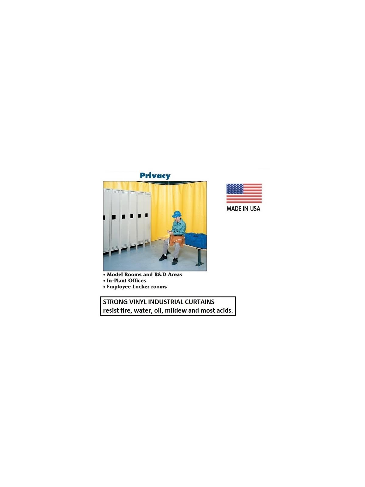 Flexible industrial curtain rolls easily out of the way when you don't need it, or when you need access to partitioned areas. All industrial curtains are constructed with nickel plated brass grommets every 12" across the top reinforced edge. Vinyls resist fire, water, oil, mildew, most acids and are CA. Fire Marshall (CFM) approved. Tear resistant. All industrial curtains utilize the same hardware components. Rugged straight track and curved corners are made of 16 ga. hot dipped galvanized steel. 1" swivel hooks are fastened to 2 wheel, industrial strength nylon rollers which are designed for smooth, fluid movement. FOB Shipping Point.