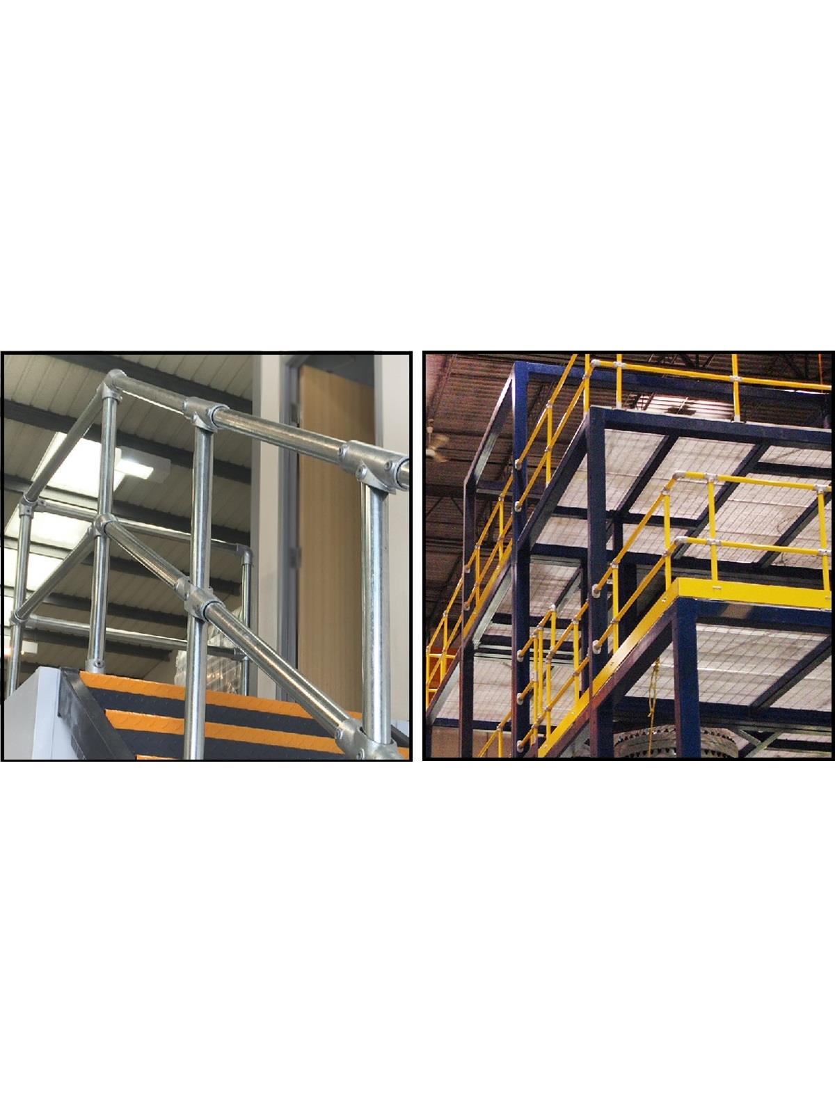 Strong pipe fittings make it easy and economical to assemble railings, racks, fencing, awning frames, boat docks, stalls, light grid systems and 1001 other applications. Galvanized fittings are ideal for either indoor or outdoor use. Holds up to two tons, with larger size fittings. 100% reusable. Meets or exceeds OSHA requirements for railings. FOB Shipping Point.