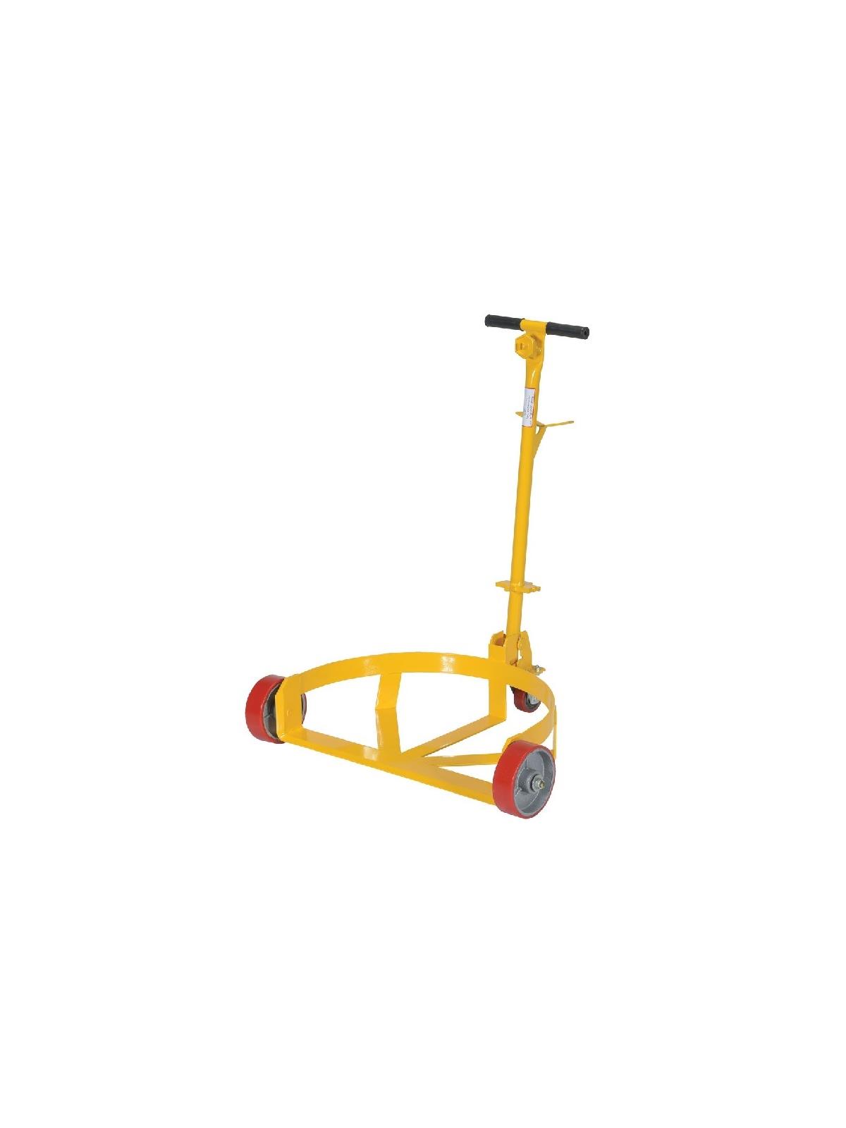 Transport one (1) 55 or 30 gallon drum or (2) 5 gallon pails with Lo-Profile Drum Caddy. To use: align unit in front of drum, remove handle, and grip drum with the handle. Tip drum up, while guiding the caddy base under the drum. Re-attach handle and transport drum to desired location. Unit rolls easily on two (2) 6" rigid wheels and one (1) 3" swivel caster. The removable handle doubles as a bung nut wrench and seal remover. Cradle height is 1/2". Inside cradle diameter is 23-1/2" Steel construction. Yellow painted finish. US Patent Number 6682084. FOB Shipping Point.