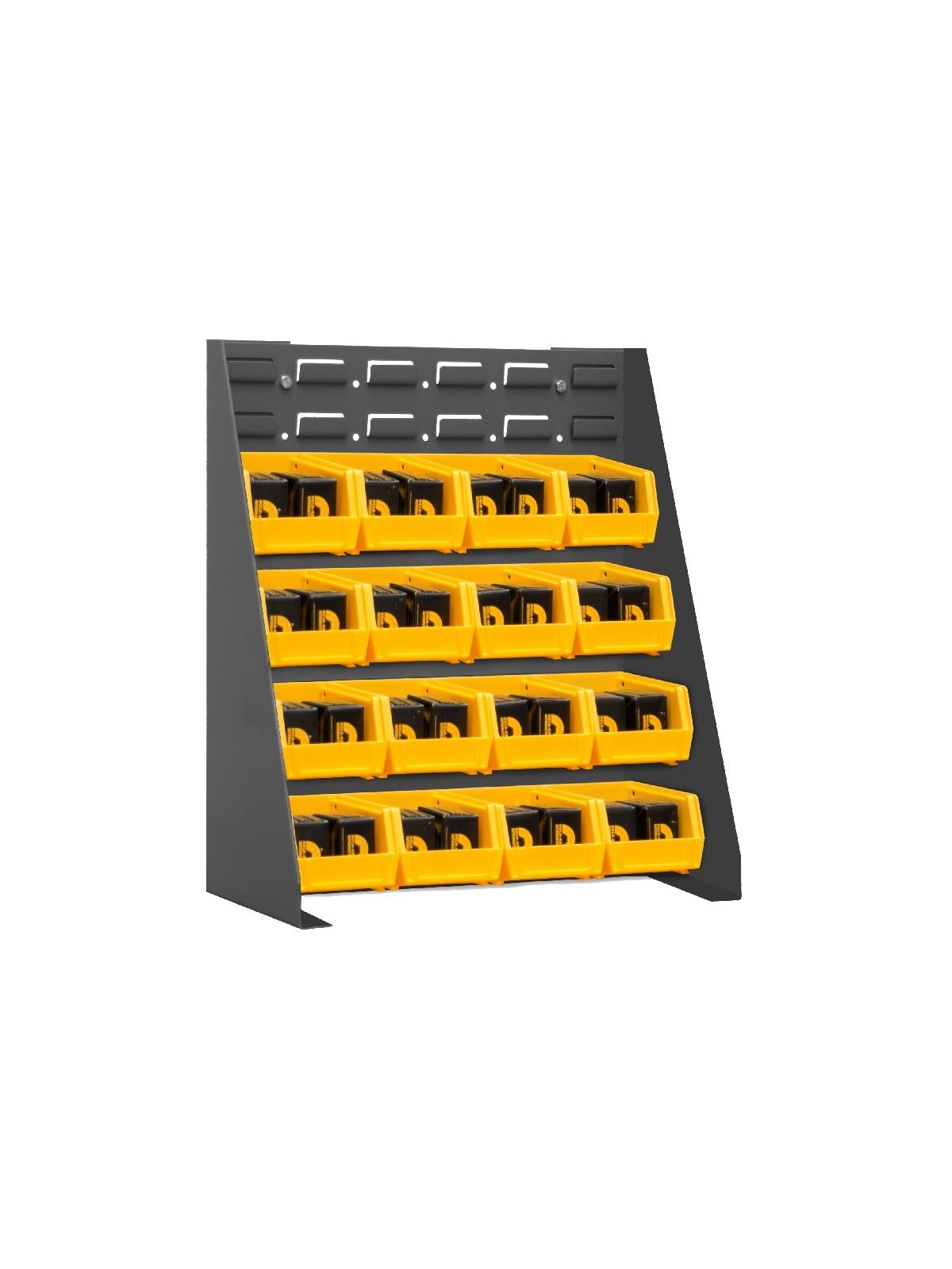 Louvers accommodate all sizes of Hook-On-Bins® (Bins are sold separately.) Tray shelves can be purchased as an accessory 1/4" holes for wall mounting - hardware not included. Durable, textured, powder coat finish. FOB Shipping Point.