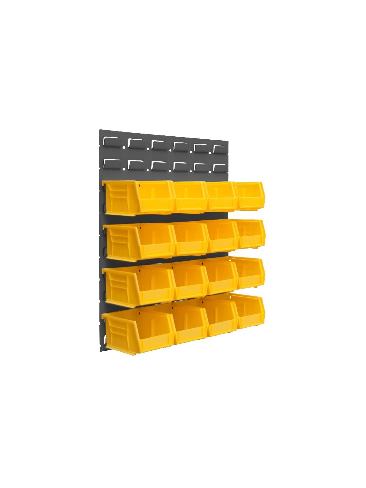 Louvers accommodate all sizes of Hook-On-Bins® (Bins are sold separately.) Tray shelves can be purchased as an accessory 1/4" holes for wall mounting - hardware not included. Durable, textured, powder coat finish. FOB Shipping Point.
