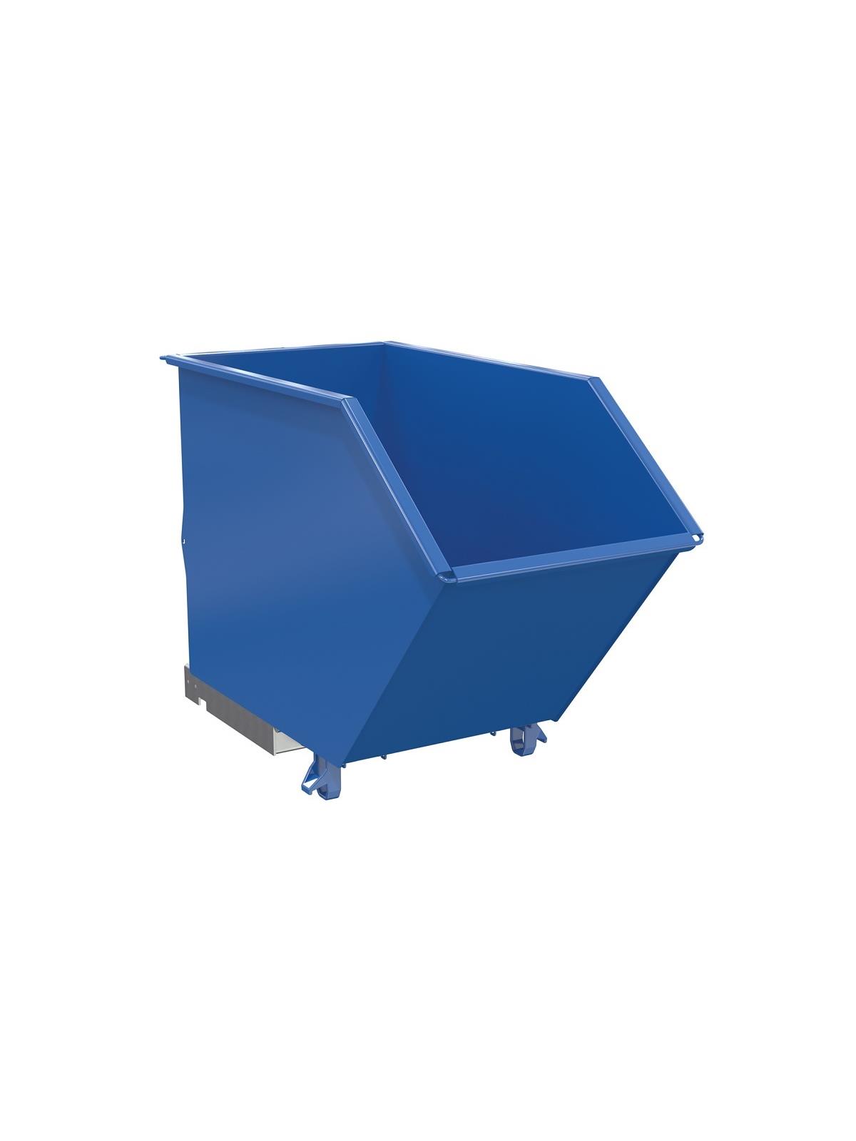 Units feature a full 90 degree dump angle with a cushioned rubber bumper stop. The low profile design is essential for convenient loading. Dumping with a fork truck is quick and simple. A cable is pulled from the seat of the fork truck to dump the hopper. The unit returns to an upright and locked position when lowered to the ground. The included safety restraint/chain must be securely attached to the lift truck without slack. 22" L usable fork pockets measure 7" W x 2"H. Formed base thickness is 1/4". Blue baked-in powder-coated toughness with a galvanized base. Other colors available-contact factory. Models H-25 may be stacked with H-50 models, while the H-100 can be stacked with the H-150 models. The H-200 hoppers can only be stacked with other H-200 series models. Must be attached to fork truck when dumping. FOB Shipping Point.