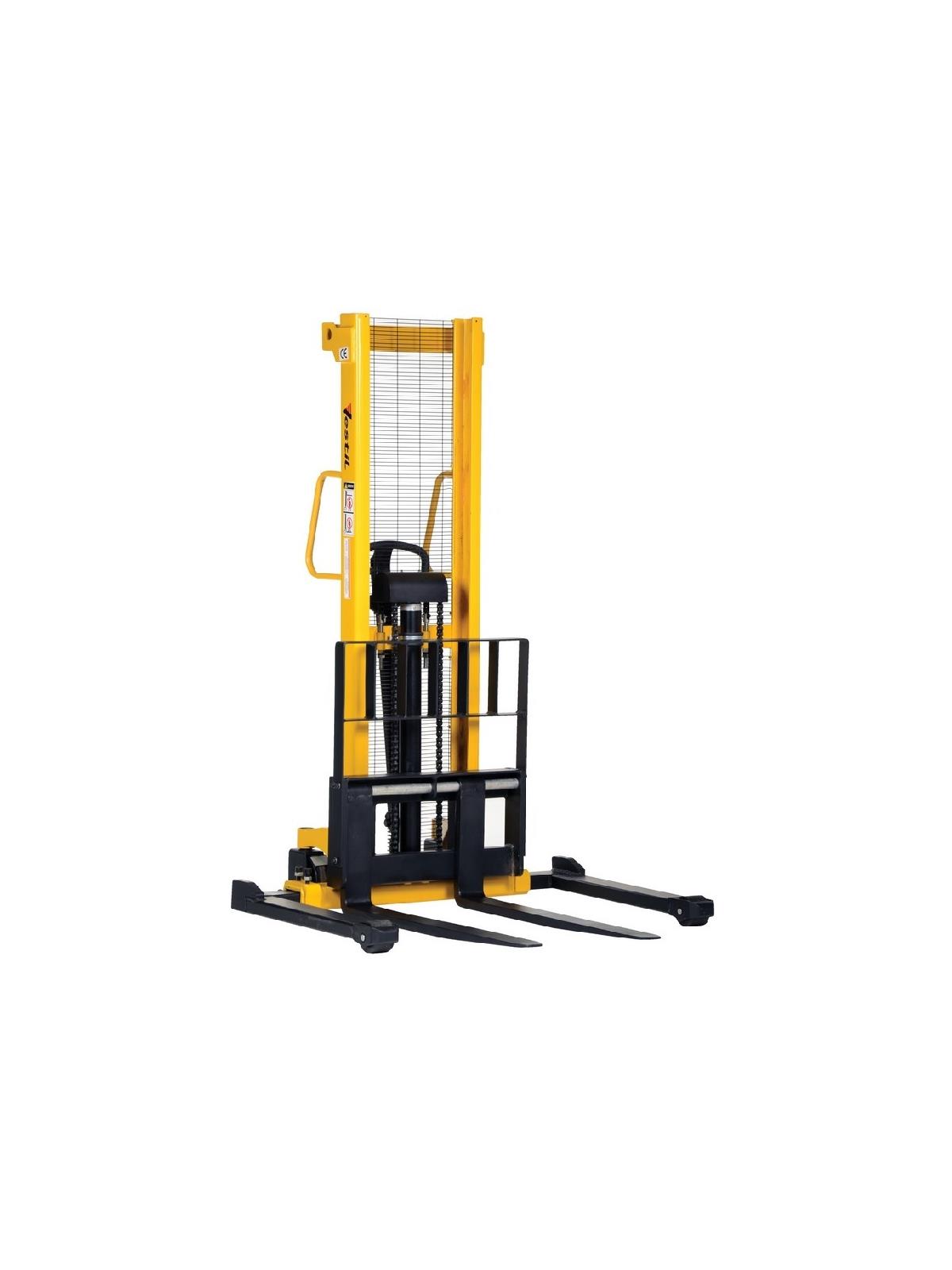 Manual Hydraulic Hand Pump Stackers are sturdy and compact to fit through most standard doors. Forks are raised by manual hydraulic hand pump operation and released by a lever situated on the handle. 3/4" lift per handle pump. NM stands for narrow mast.