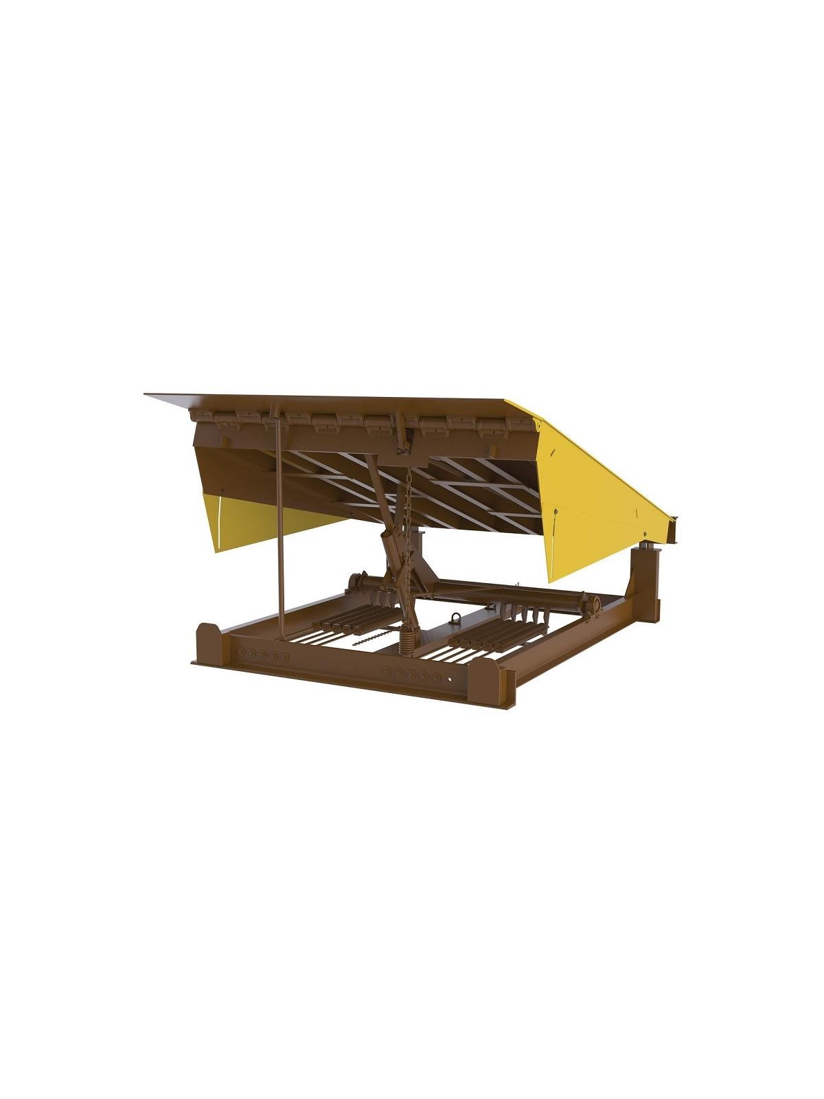 Springs lift dock through a graduated cam ensuring a uniform vertical force. Easy walk down. All heavy duty construction features. Platform is 1/4" non-skid diamond plate (55,000 PSI) steel. 6" structural steel support under-structure for long life. Lip is 16" long with 55,000 PSI steel. Includes steel toe guards on both sides, flush with platform edge. The most dependable dockleveler on the market today. 20,000 lb. load capacity. Capacities to 50,000 lbs. available. Contact for details. FOB Shipping Point.