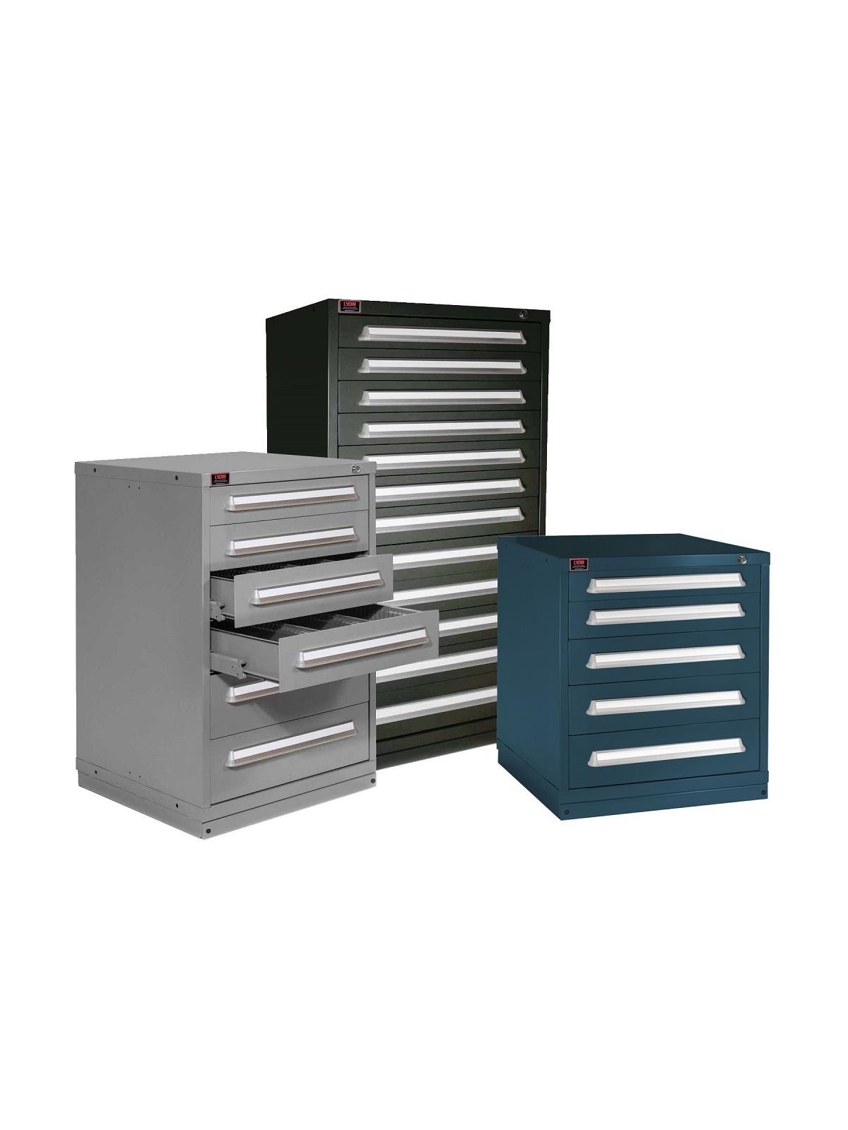 Lyon Modular Drawer Cabinets provide you with the highest density storage solution for small to mid-sized products, while reducing your storage footprint by as much as 50%. Each cabinet features a fork lift base.