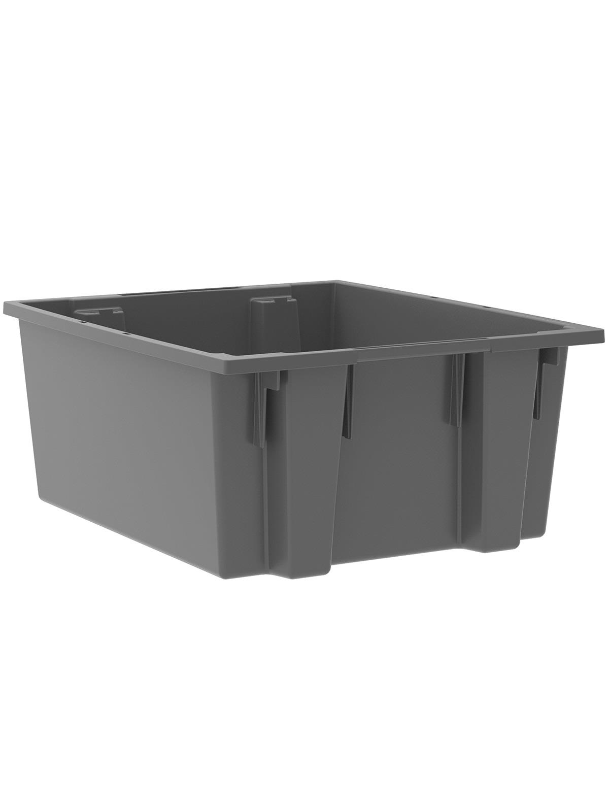 Heavy-duty construction provides a superior service life resulting in lower replacement costs than “budget-priced” totes. Smooth surfaces are easy to clean and are resistant to most solvents and chemicals. Available optional lids protect contents from dust and damage. Stackable with or without lids for shipping. When empty and without lids, totes nest for space saving storage. Available in Red, Blue, or Gray. Gray totes manufactured from FDA-approved materials. FOB Shipping Point.