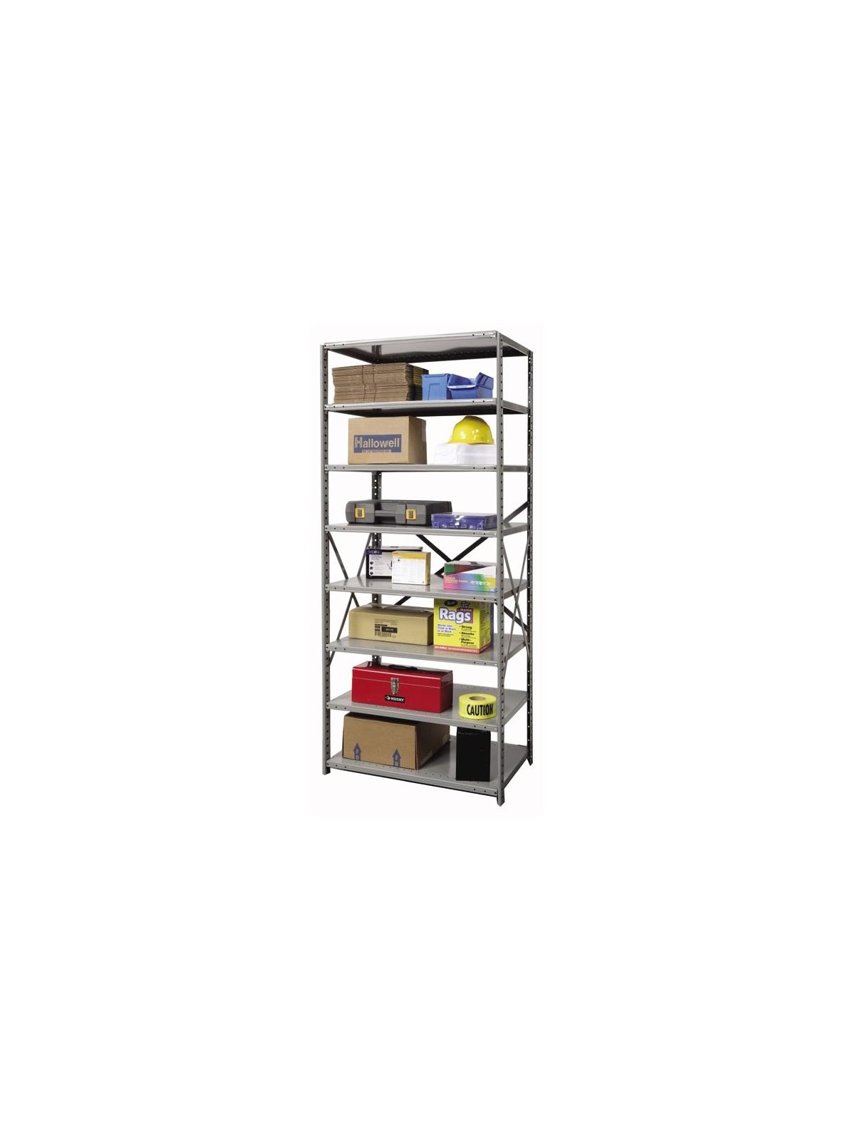 Shelves are box formed at front and back allowing high capacity storage with minimal deflection. Sides of shelves are triple flanged adding to shelf strength. Compression shelf clips improve overall unit capacity. Posts are punched to allow shelves to be adjusted top to bottom at 1-1/2” on center. Beaded front posts allow use of full shelf width and are common between adjoining units reducing assembly and installation time as well as reducing cost. Angle back posts can be bolted together when joining units side-by-side or back-to-back. Side and back sway braces eliminate units sway providing a safe storage solution. Color: Dark Gray (HG). FOB Shipping Point.