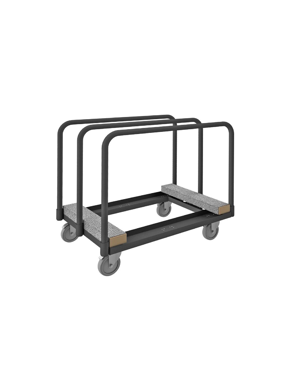 Heavy duty, 14 gauge, steel platform. Easy to access and pick up on-board product. Allows for the storage and transportation of various sizes of panels & products. Durable, gray, textured powder coat finish. FOB Shipping Point.