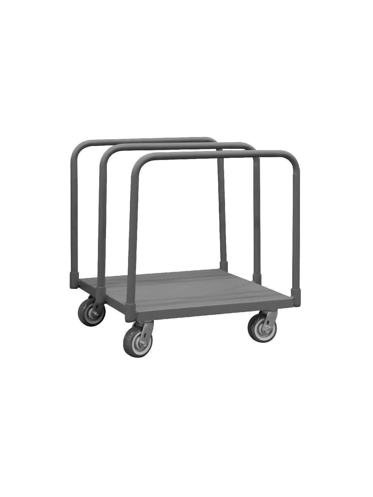 Heavy duty, 14 gauge, steel platform. Easy to access and pick up on-board product. Allows for the storage and transportation of various sizes of panels & products. Durable, gray, textured powder coat finish. FOB Shipping Point.