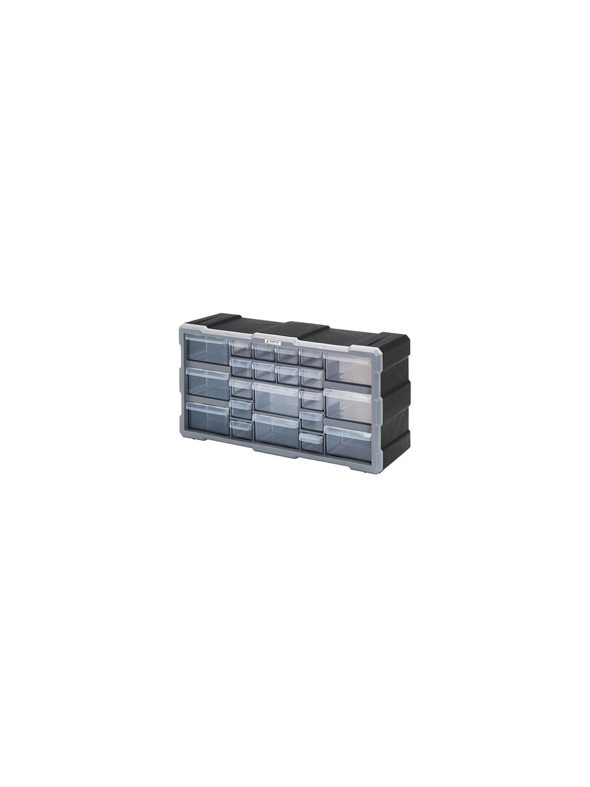 Heavy-duty reinforced construction with durable high impact polypropylene frame and clear polypropylene drawers and bins. See through drawers come with drawer dividers for every drawer. Stable stacking and mounting. Drawer stops prevent spills. Textured drawer pulls. FOB Shipping Point.