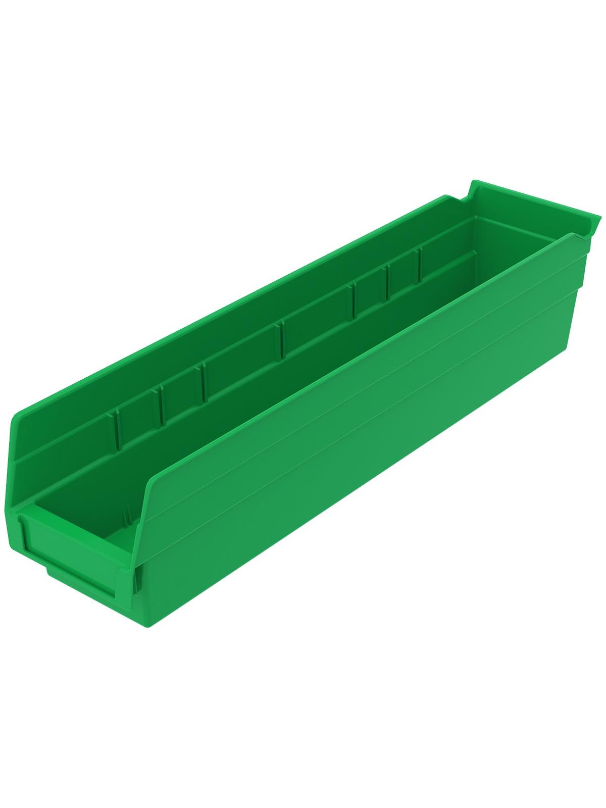 Outlasts corrugated bins - pays for themselves in reduced replacement costs. One-piece construction is waterproof and unaffected by grease or oil. Works with 12", 18" and 24" deep shelving, or vertical storage and retrieval units. Labels available. Available in 22 sizes and five colors - Red, Yellow, Blue, Green, or Semi-Clear. FOB Shipping Point.