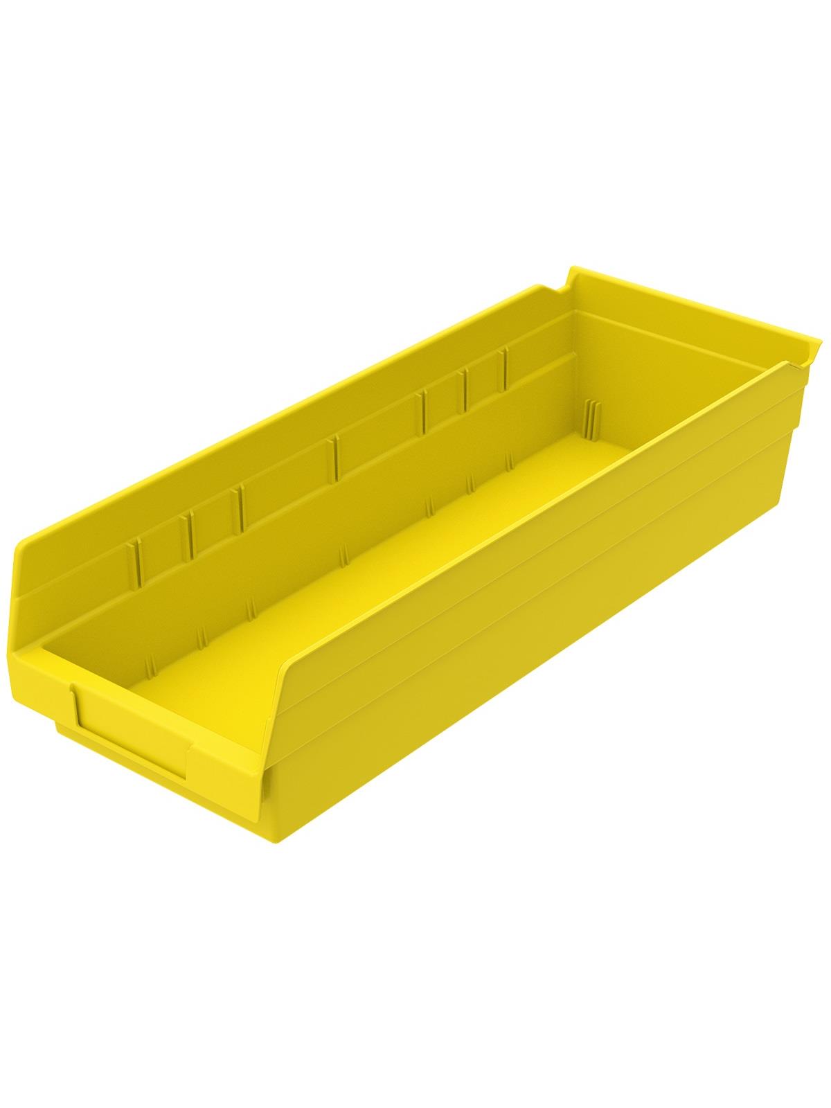 Outlasts corrugated bins - pays for themselves in reduced replacement costs. One-piece construction is waterproof and unaffected by grease or oil. Works with 12", 18" and 24" deep shelving, or vertical storage and retrieval units. Labels available. Available in 22 sizes and five colors - Red, Yellow, Blue, Green, or Semi-Clear. FOB Shipping Point.