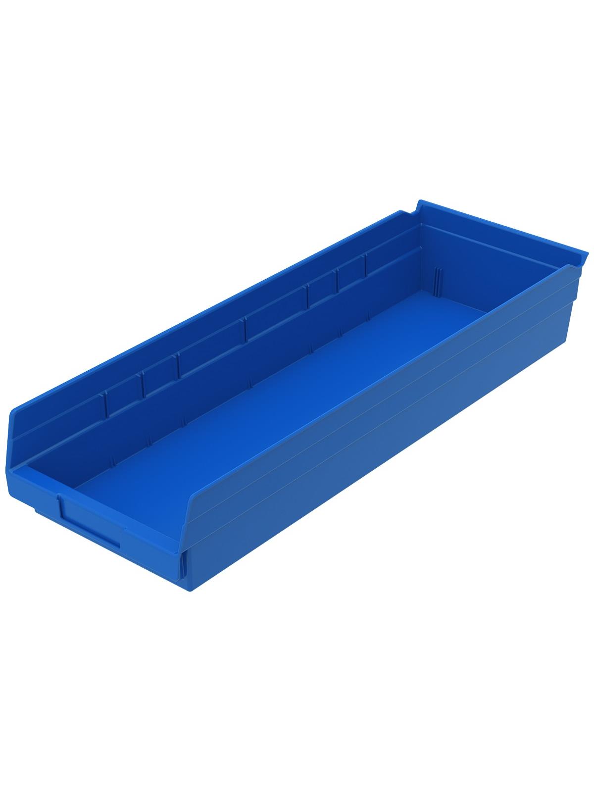 Outlasts corrugated bins - pays for themselves in reduced replacement costs. One-piece construction is waterproof and unaffected by grease or oil. Works with 12", 18" and 24" deep shelving, or vertical storage and retrieval units. Labels available. Available in 22 sizes and five colors - Red, Yellow, Blue, Green, or Semi-Clear. FOB Shipping Point.