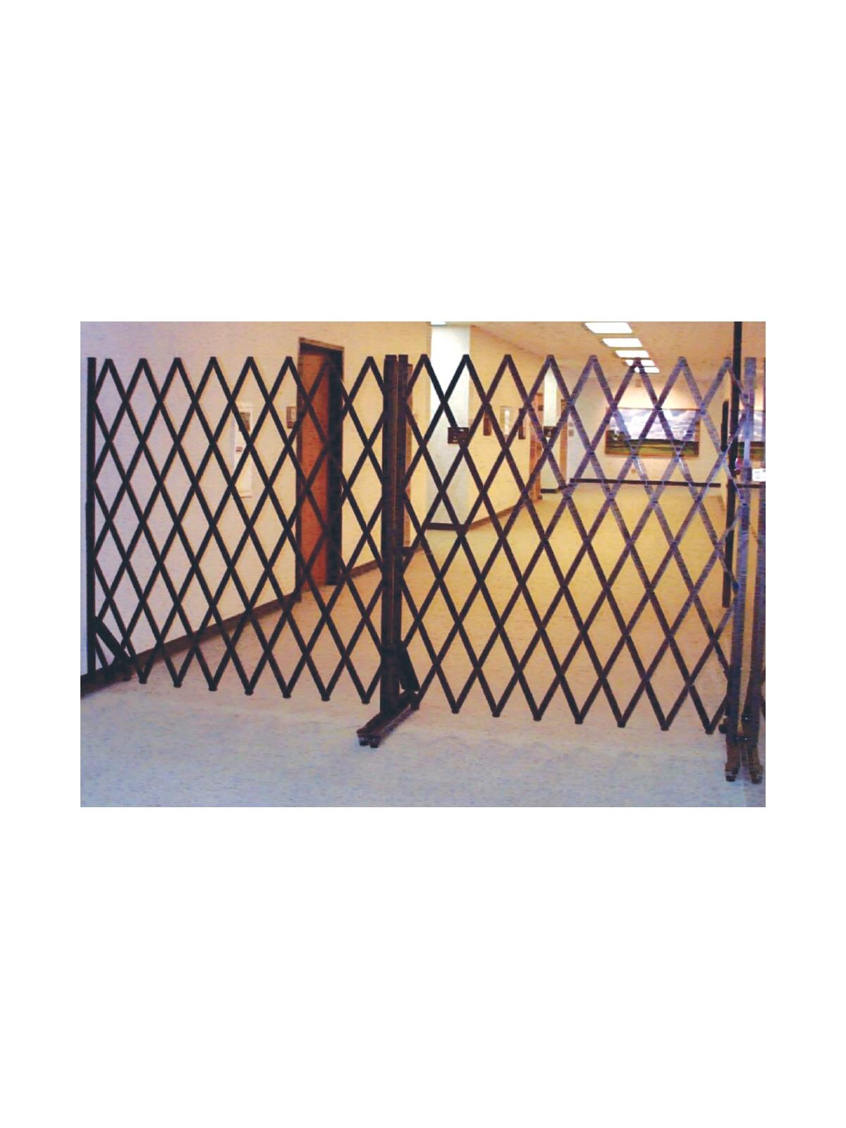 Movable security gates lock to walls with simple padlock hasp arrangement included. 6-1/2' high when folded, fits through standard door openings. Stores out of sight when not in use. FOB Shipping Point.