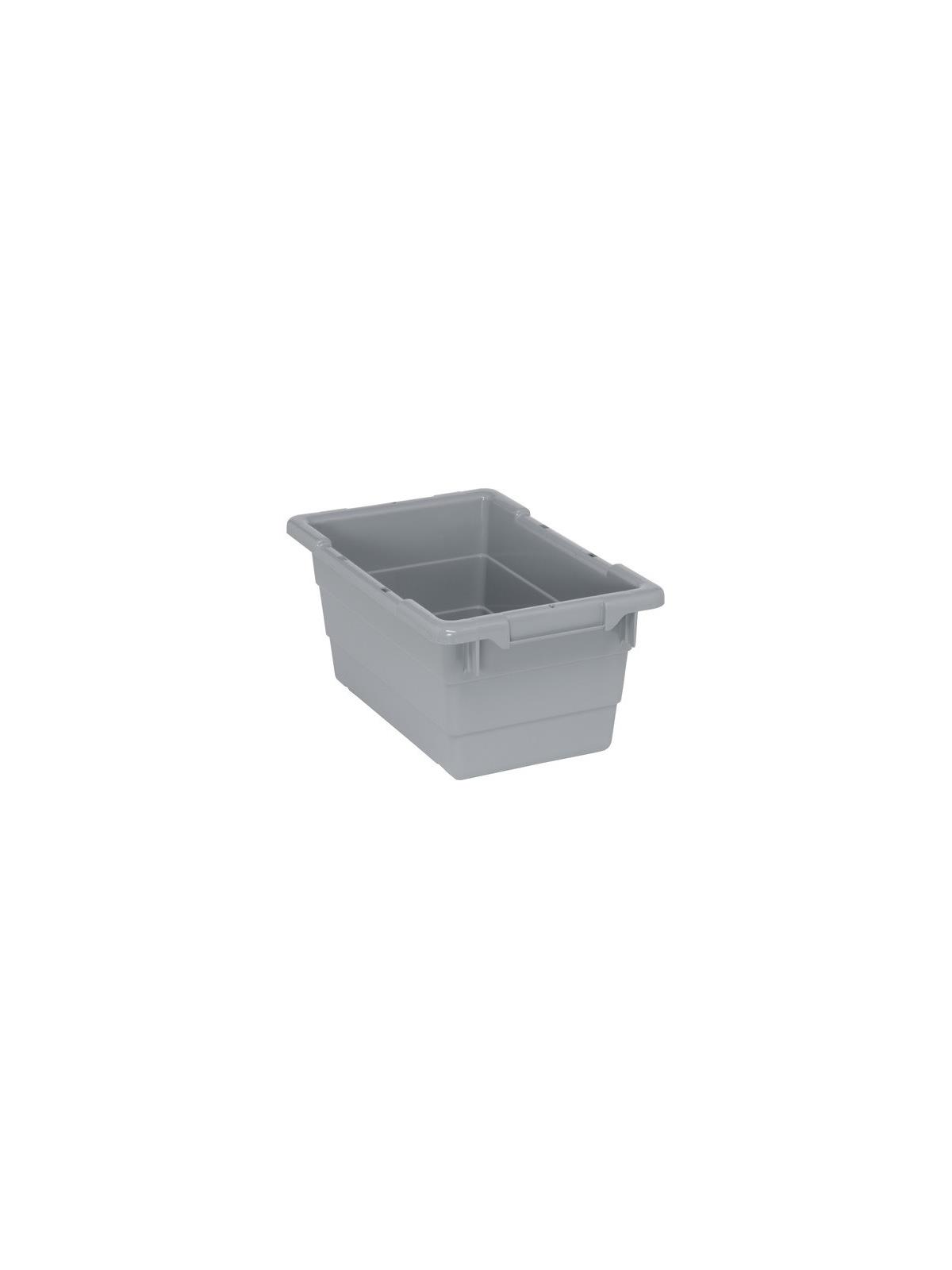 Ideal for production, assembly or order picking. Injection molded from high impact polyethylene -- won't crack, rust or corrode. Easy to clean and maintain. Built in handles and bottom grooves make handling easy. Holds up to 100 lb. loads. 8-1/4" drill hole pattern on bottom if drainage is required. Available in Gray, Blue or White. FOB Shipping Point.