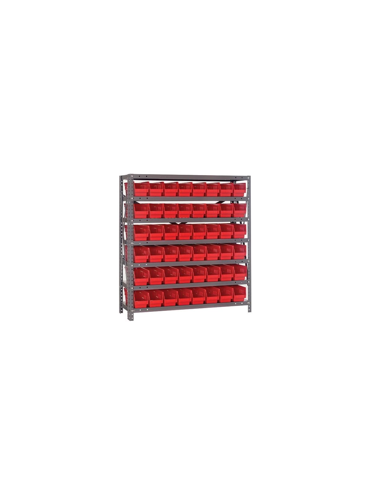 Rugged 350 lb. capacity per shelf, standard shelving unit will keep parts organized and readily accessible. Gray enamel finish will not rust or corrode. 12-HQSB100, 8-HQSB101, 5-HQSB102, 4-HQSB107, 3-HQSB109 fit across a standard 36"W x 12"D shelf. 8-HQSB103, 5-HQSB104, 4-HQSB108, 3-HQSB110 fit across a 36"W x 18"D shelf. Bins are available in Blue, Yellow, Red, Green, Ivory or Black. FOB Shipping Point.