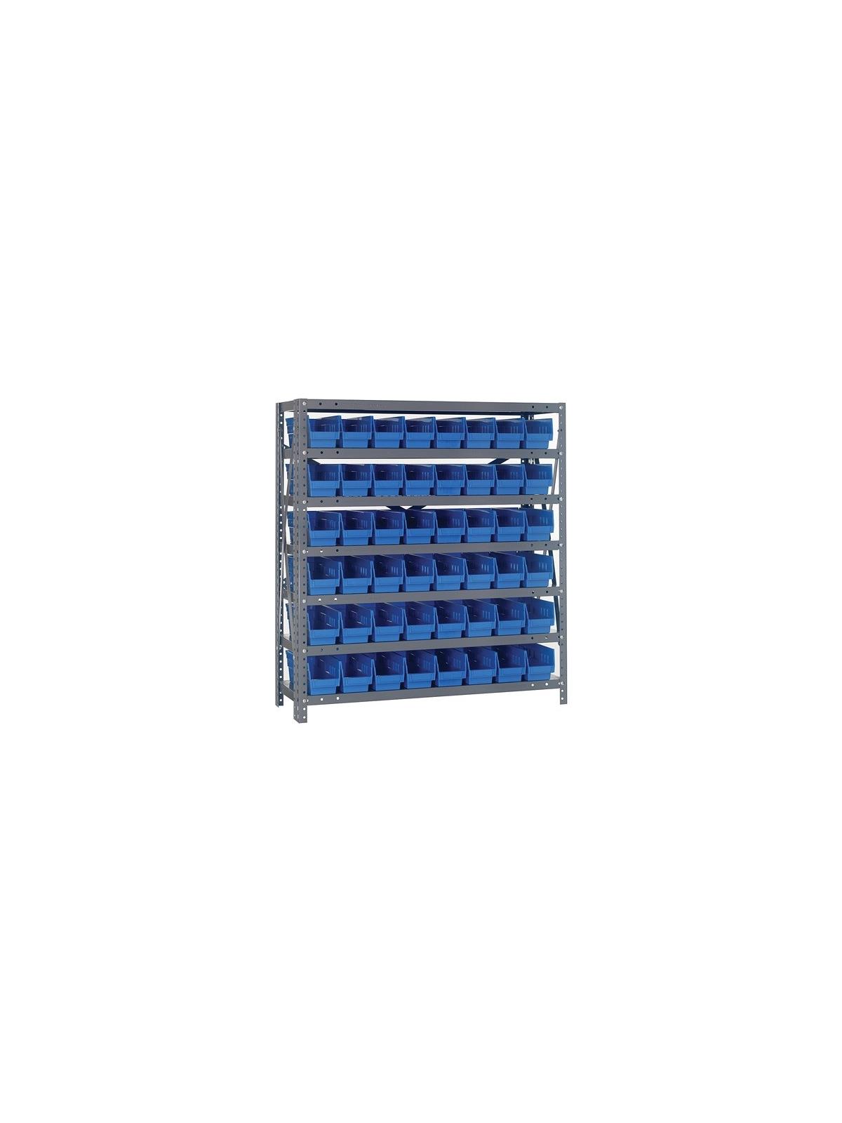 Rugged 350 lb. capacity per shelf, standard shelving unit will keep parts organized and readily accessible. Gray enamel finish will not rust or corrode. 12-HQSB100, 8-HQSB101, 5-HQSB102, 4-HQSB107, 3-HQSB109 fit across a standard 36"W x 12"D shelf. 8-HQSB103, 5-HQSB104, 4-HQSB108, 3-HQSB110 fit across a 36"W x 18"D shelf. Bins are available in Blue, Yellow, Red, Green, Ivory or Black. FOB Shipping Point.