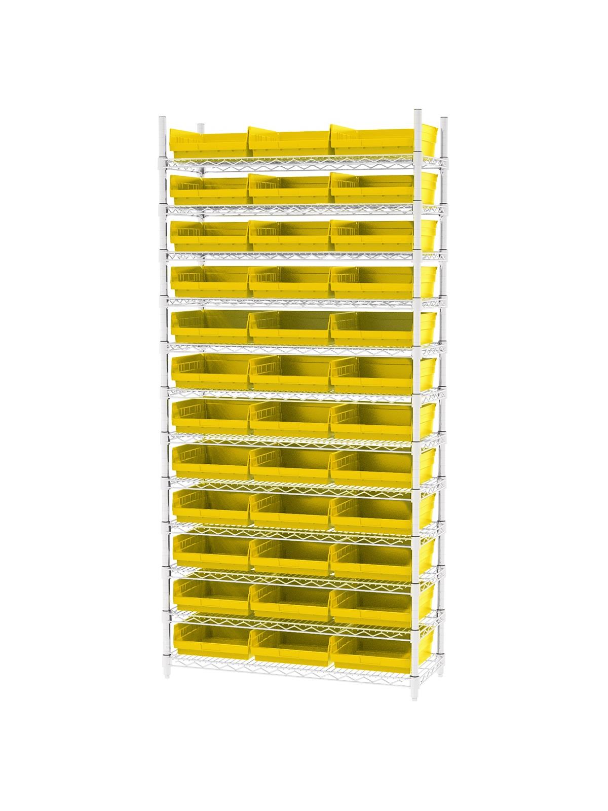 Shelf Bin Wire Systems can be configured for use with 36, 48, 60 or 96 bins providing a versatile system for storage and material handling. Durable and strong polypropylene shelf bins outlast corrugated bins. Bins available in Blue, Red, Yellow, or Semi-Clear. FOB Shipping Point.