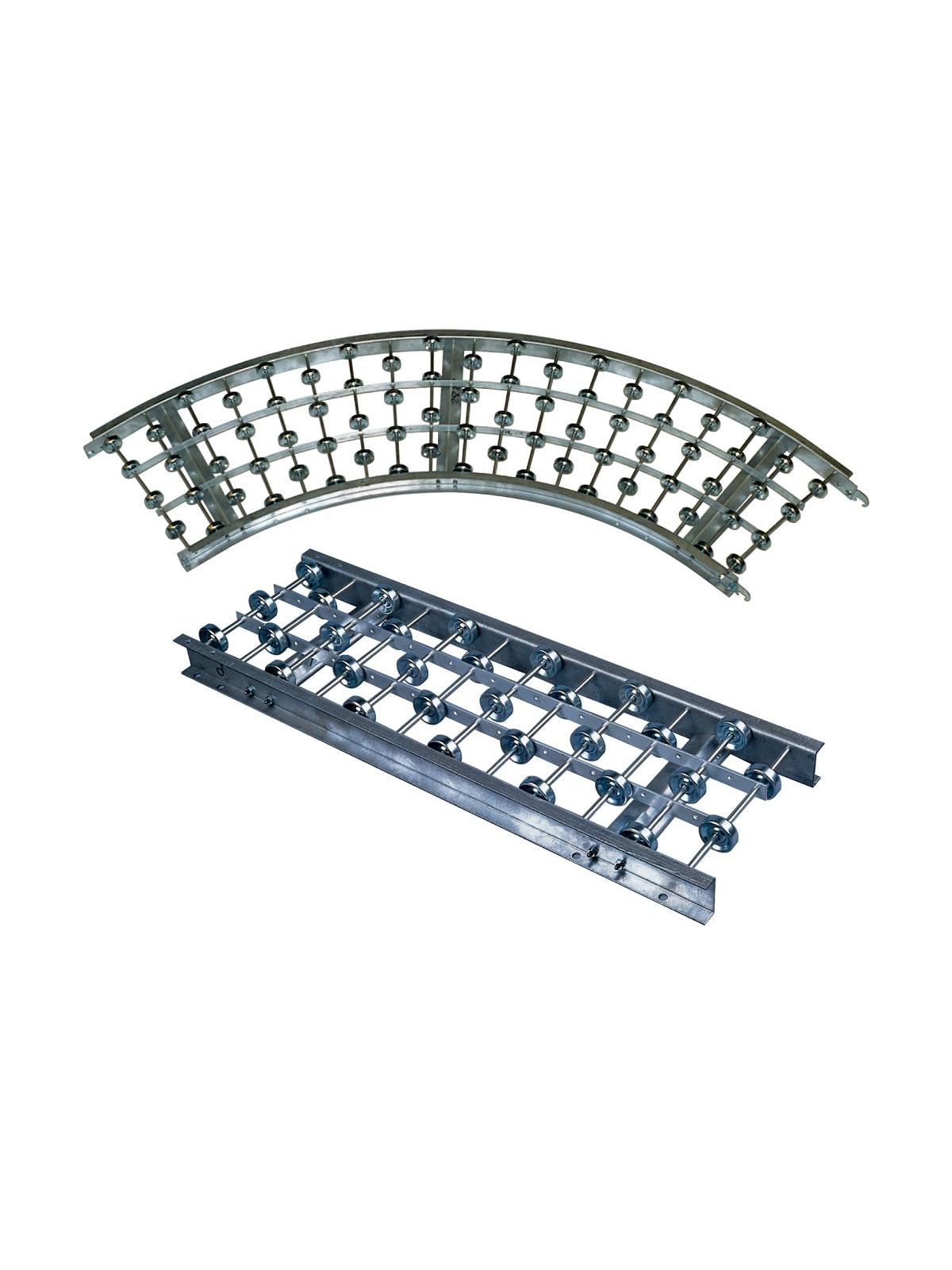 Strong and long-lasting, built for minimum weight and maximum strength. Aluminum conveyors have 2-1/2" x 1" x 1/8" aluminum channel frames, while steel ones have 2-1/2" x 1" x 12 gauge galvanized frames. Wheels are zinc plated to resist corrosion. Available in straight or curved sections. 3' inside radius on curved sections. FOB Shipping Point.