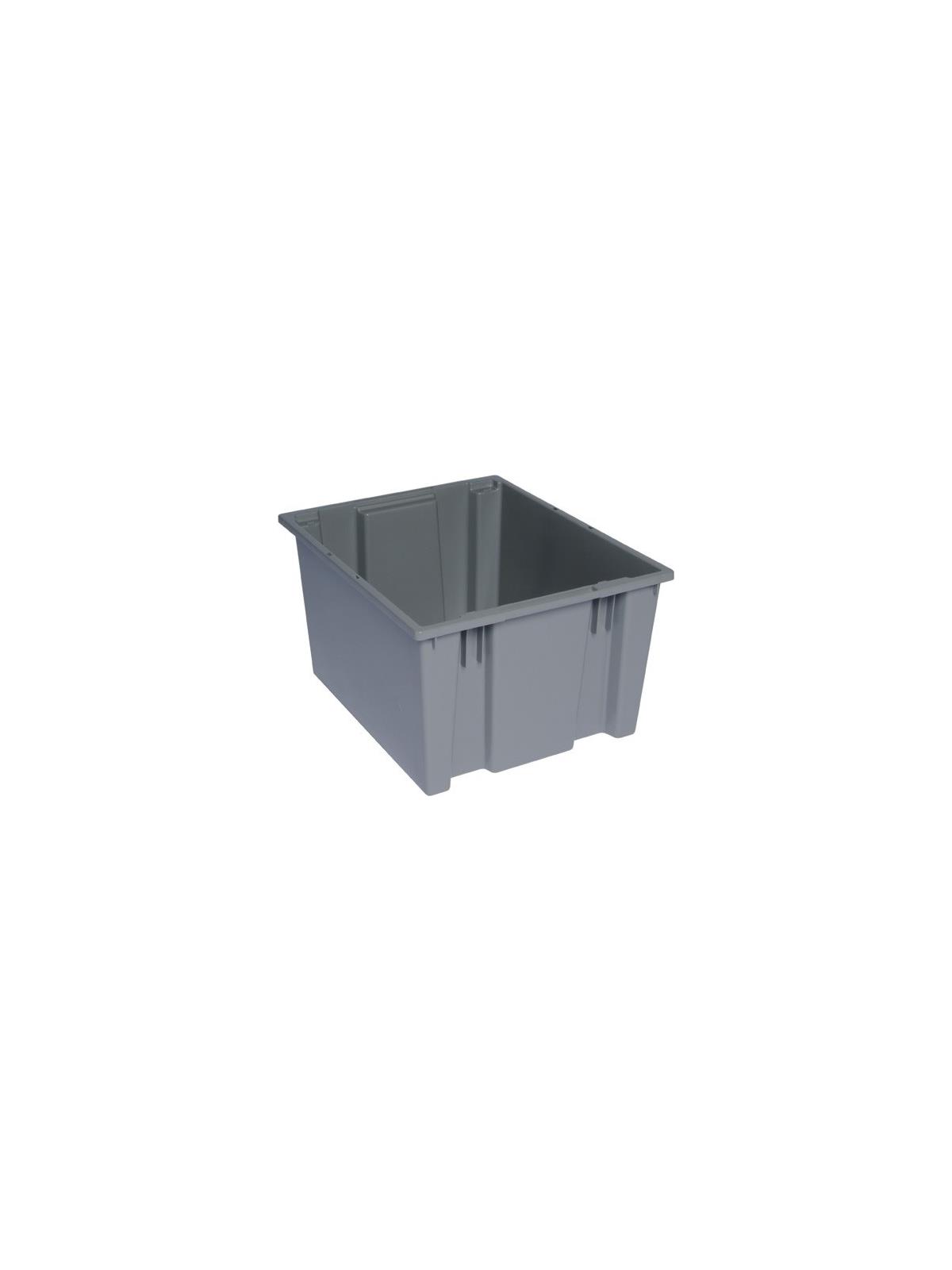 High density polypropylene, injection molded for uniform wall thickness and added strength. Lids snap tightly and securely for a safe fit. Quick 180° turn offers space-saving stacking and nesting. Stacks 6 high. Fits 48" x 40" pallets (6 SNT190, 4 SNT230 per level). Usable in temperatures from -­10° to 250°F. Available in Gray, Blue, Red or Clear. Optional clear, see-thru Stack and Nest Label Holder (HSNH010) and optional Dolly (HDLY-3018) available. FOB Shipping Point.