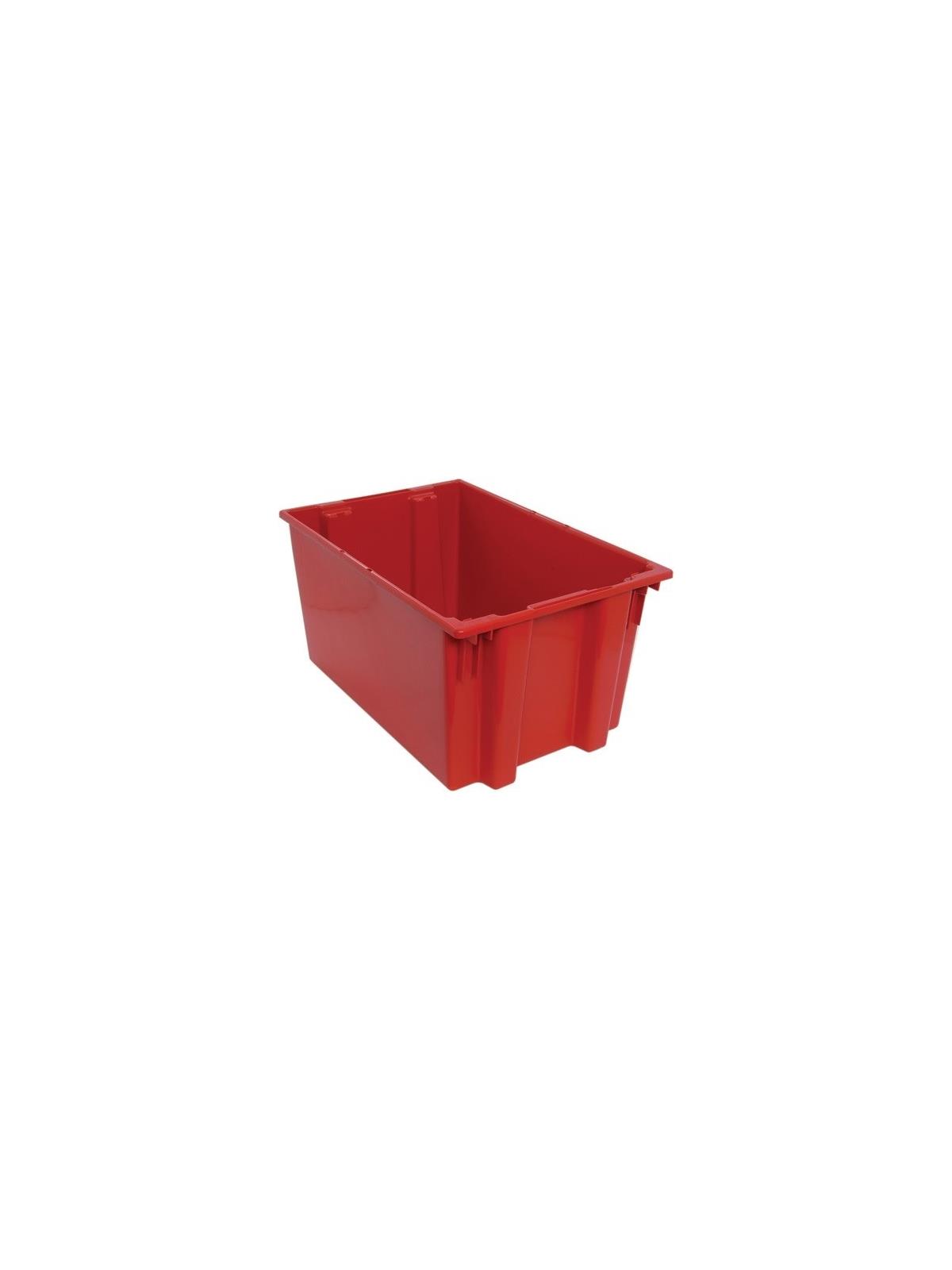 High density polypropylene, injection molded for uniform wall thickness and added strength. Lids snap tightly and securely for a safe fit. Quick 180° turn offers space-saving stacking and nesting. Stacks 6 high. Fits 48" x 40" pallets (6 SNT190, 4 SNT230 per level). Usable in temperatures from -­10° to 250°F. Available in Gray, Blue, Red or Clear. Optional clear, see-thru Stack and Nest Label Holder (HSNH010) and optional Dolly (HDLY-3018) available. FOB Shipping Point.