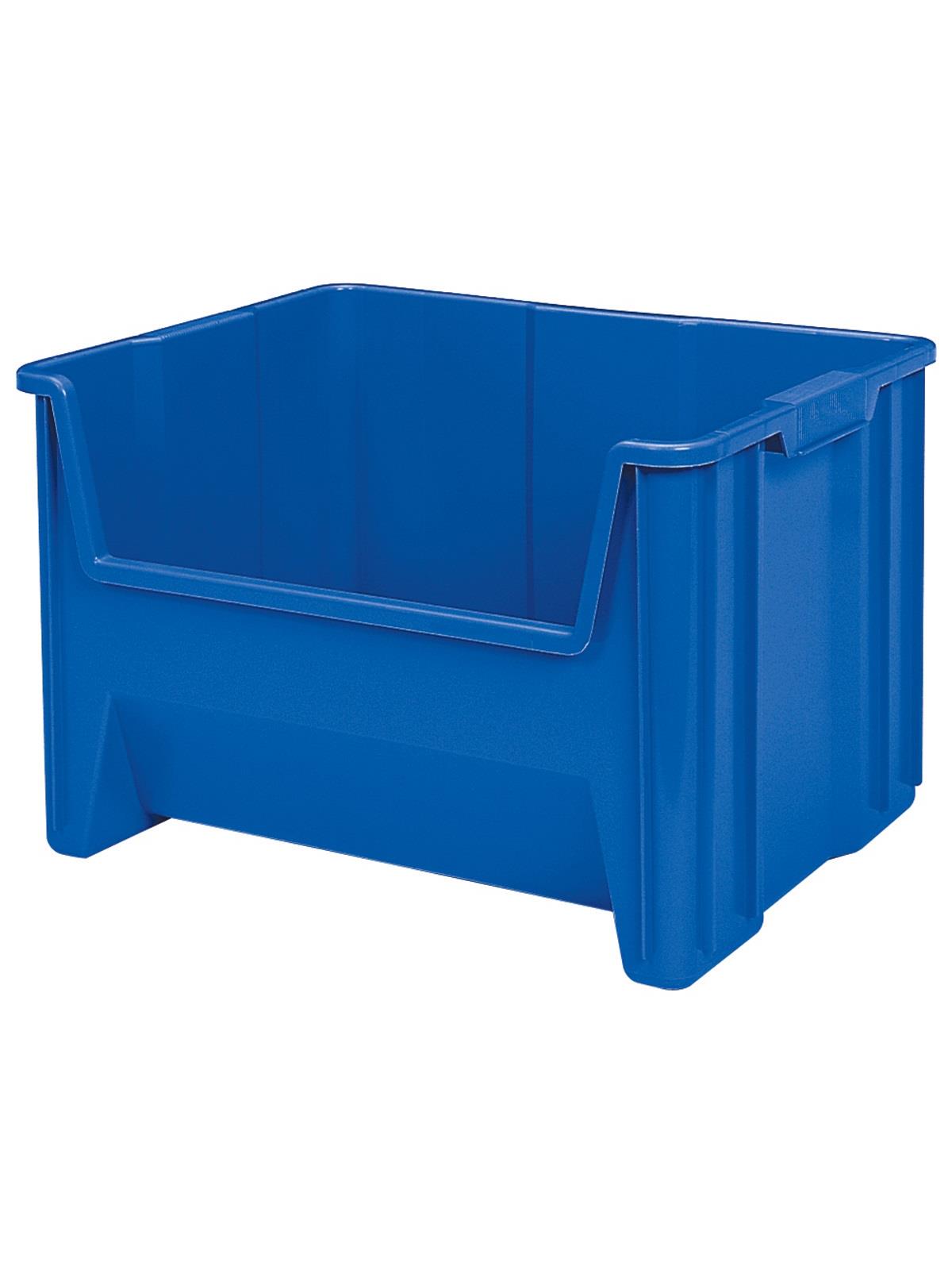 • Bins stack to form tall, stable storage arrangements on floors or standard shelving.