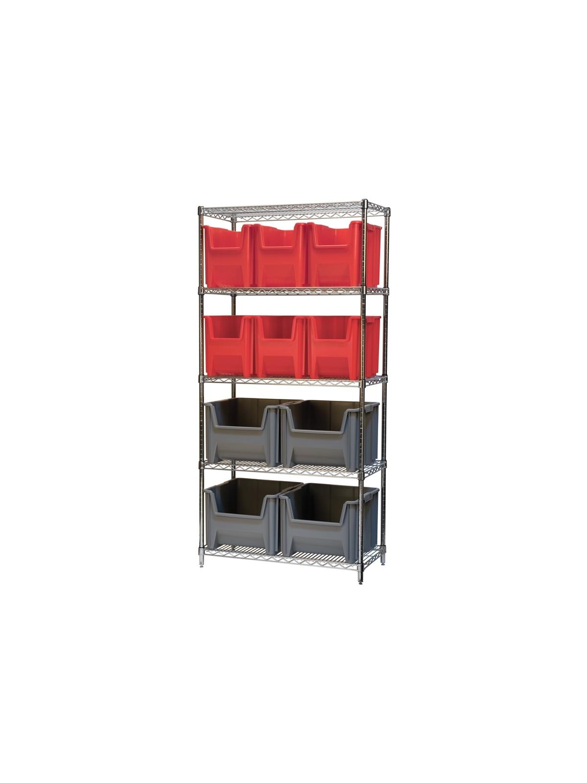 Available with shelves and come with 8, 9 or 12 bins. Bins feature a wide hopper front for easy access. Bins available in Blue, Red, or Gray. FOB Shipping Point.
