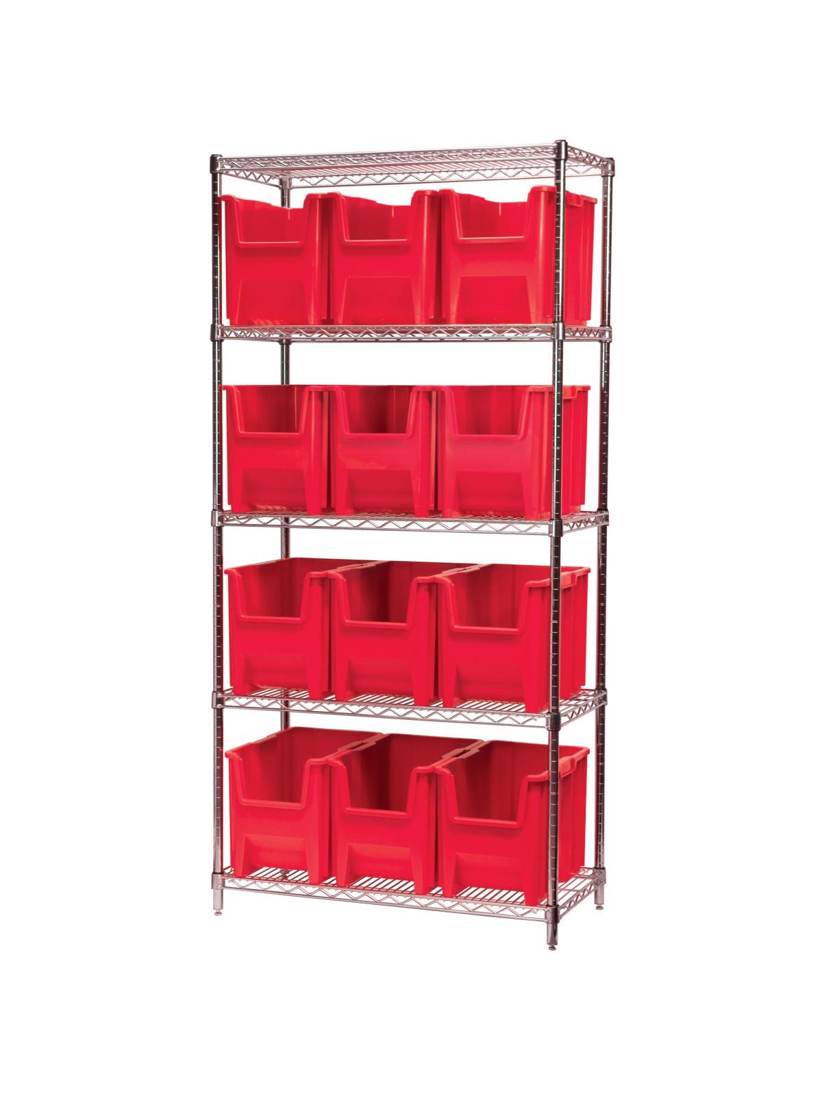 Available with shelves and come with 8, 9 or 12 bins. Bins feature a wide hopper front for easy access. Bins available in Blue, Red, or Gray. FOB Shipping Point.