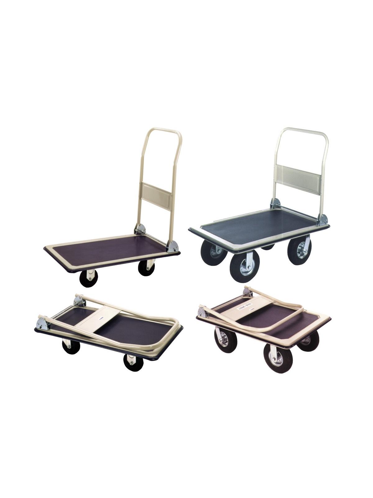 Fold down handle for easy, space saving storage. Protective vinyl perimeter bumpers won't scratch walls or furniture. Non-skid heavy vinyl deck surface. Enameled finish. FOB Shipping Point.
