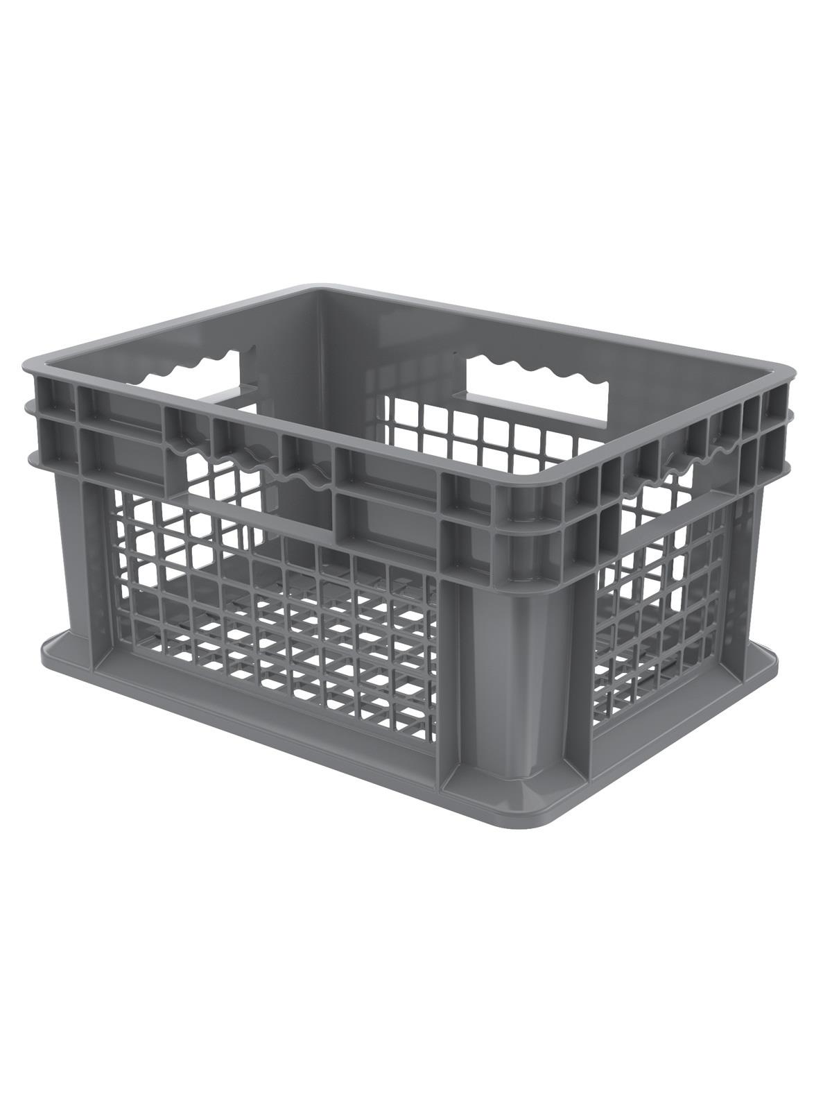 These straight wall containers have smooth inner walls that make cleaning easy and sanitary. The mesh sides allow excellent hot or cold air ventilation. Manufactured from injection-molded high-density polyethylene. Available in 4 sizes and 3 styles. Gray in color. FOB Shipping Point.