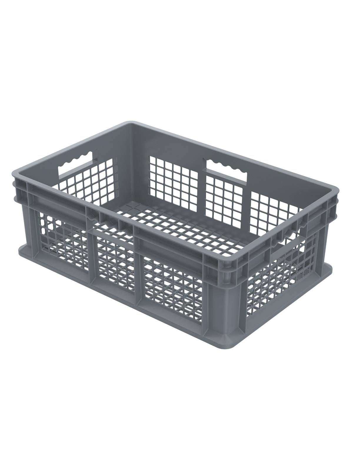 These straight wall containers have smooth inner walls that make cleaning easy and sanitary. The mesh sides allow excellent hot or cold air ventilation. Manufactured from injection-molded high-density polyethylene. Available in 4 sizes and 3 styles. Gray in color. FOB Shipping Point.