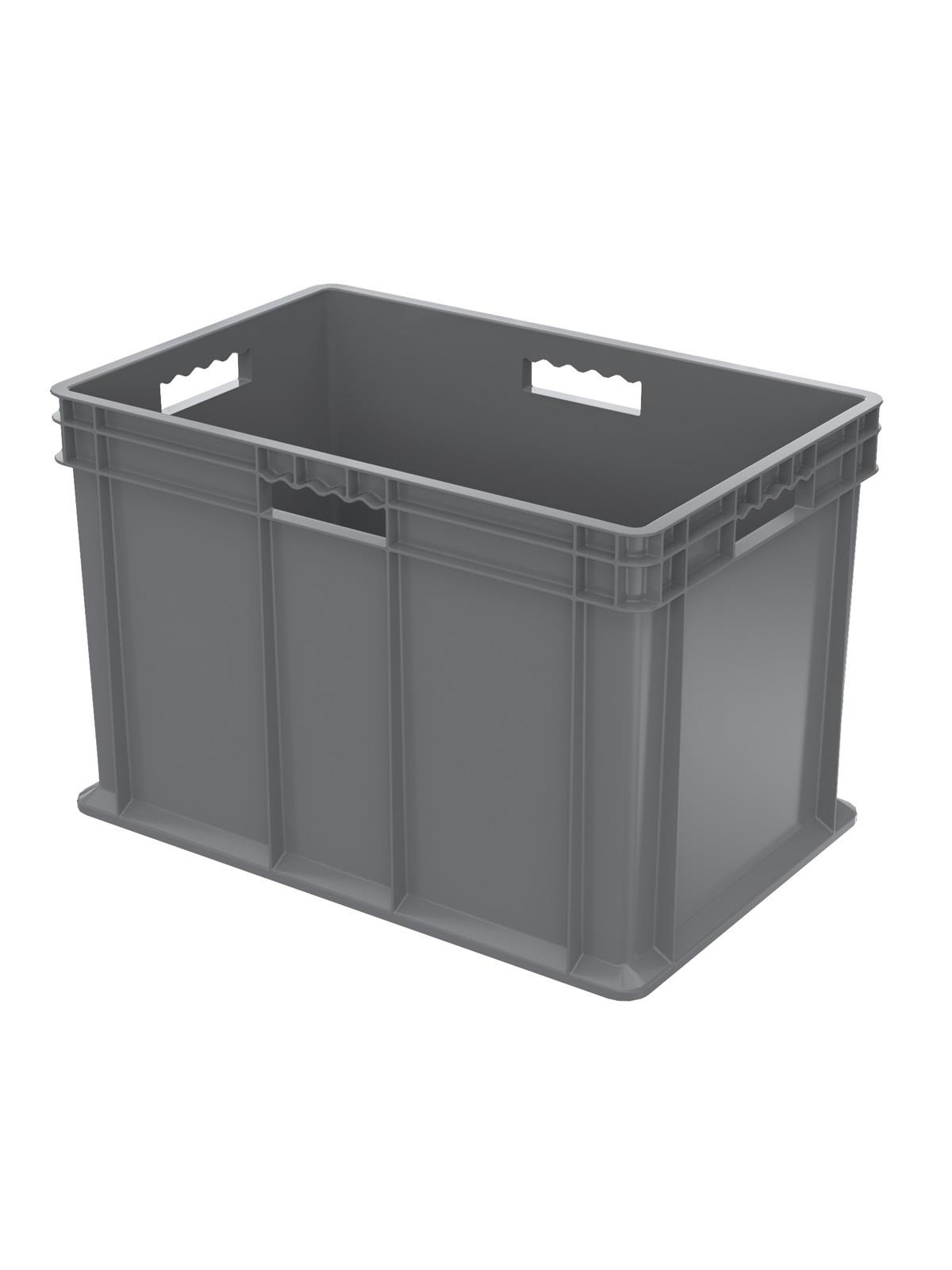 These straight wall containers have smooth inner walls that make cleaning easy and sanitary. The mesh sides allow excellent hot or cold air ventilation. Manufactured from injection-molded high-density polyethylene. Available in 4 sizes and 3 styles. Gray in color. FOB Shipping Point.